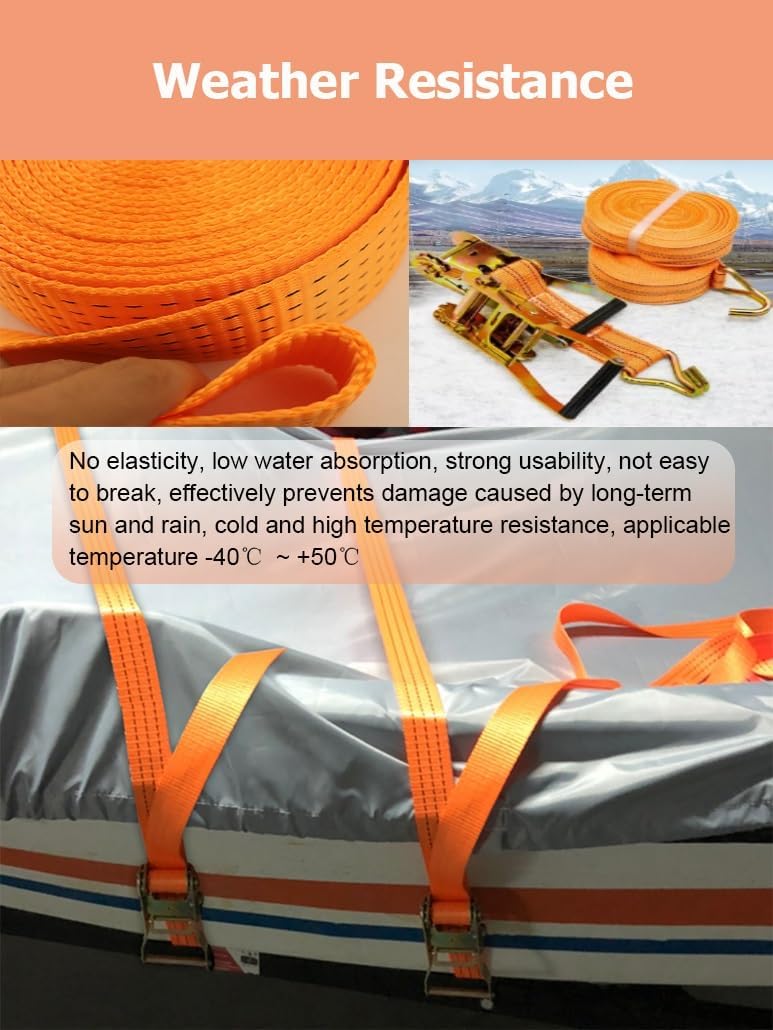 Are you still worried about cargo falling off easily?Heavy duty ratchet straps with steel hooks, tie down straps can be widely used to secure cargo for moving and securing equipment, motorcycles, trucks, vans, kayaks, warehouses, etc.Specifications: Name: Polyester Tie Down StrapsColor: YellowMaterial: Polyester Straps + Steel Frame + Aluminum HandleWidth: 4 cm/ 1.6 in, 5 cm / 2 inLength: 2.0 m / 6.6 Ft , 3.0 m / 9.8 Ft , 4.0 m / 13.1 Ft , 5.0 m / 16.4 Ft , 6.0 m / 19.7 Ft , 7.0 m / 23.0 Ft , 8.0 m / 26.2 Ft , 9.0 m / 29.5 Ft , 10.0 m / 32.8 Ft , 11.0 m /36.1 Ft , 12.0 m / 39.4 Ft , 13.0 m / 42.7 Ft , 14.0 m / 45.9 Ft , 15.0 m / 49.2 Ft , 17.0 m / 55.8 Ft , 18.0 m / 59.1 Ft , 20.0 m / 65.6 Ft, 22.0 m / 72.2 FtApplication: Bundling goods /fixing goods, etc.Features:1. High-density cargo straps are wear-resistant and break-resistant2. Cargo straps are easy to use, not easy to fall off and can be fixed immediately3. Truck straps have an easy-release mechanism to easily release the tension on the straps4. Ratchet straps have double-stitched edges to prevent slipping during use; ensure that the cargo is firmly fixed in place, giving you peace of mind when transporting cargo; reinforced stitching adds extra strength and stability to the straps5. Lashing strap are equipped with double J-hooks for easy fixation6. Tow strap have strong pulling force, 6 tons/13227 lbs7. Tie down straps are widely used, including moving, securing cargo, camping or other tie-down needs, such as warehouses, motorcycles, canoes, kayaks, ATVs, trucks, boxes, furniture, lawn equipment, etcPackage Included:2 x Heavy Duty Ratchet Straps with HooksTighten Ratchet Straps Steps:1. Pass the strap under the tensioner rotating shaft2. Pass the strap through the center slot of the tensioner rotating shaft3. Pull the tensioner handle back and forthRelease Ratchet Straps