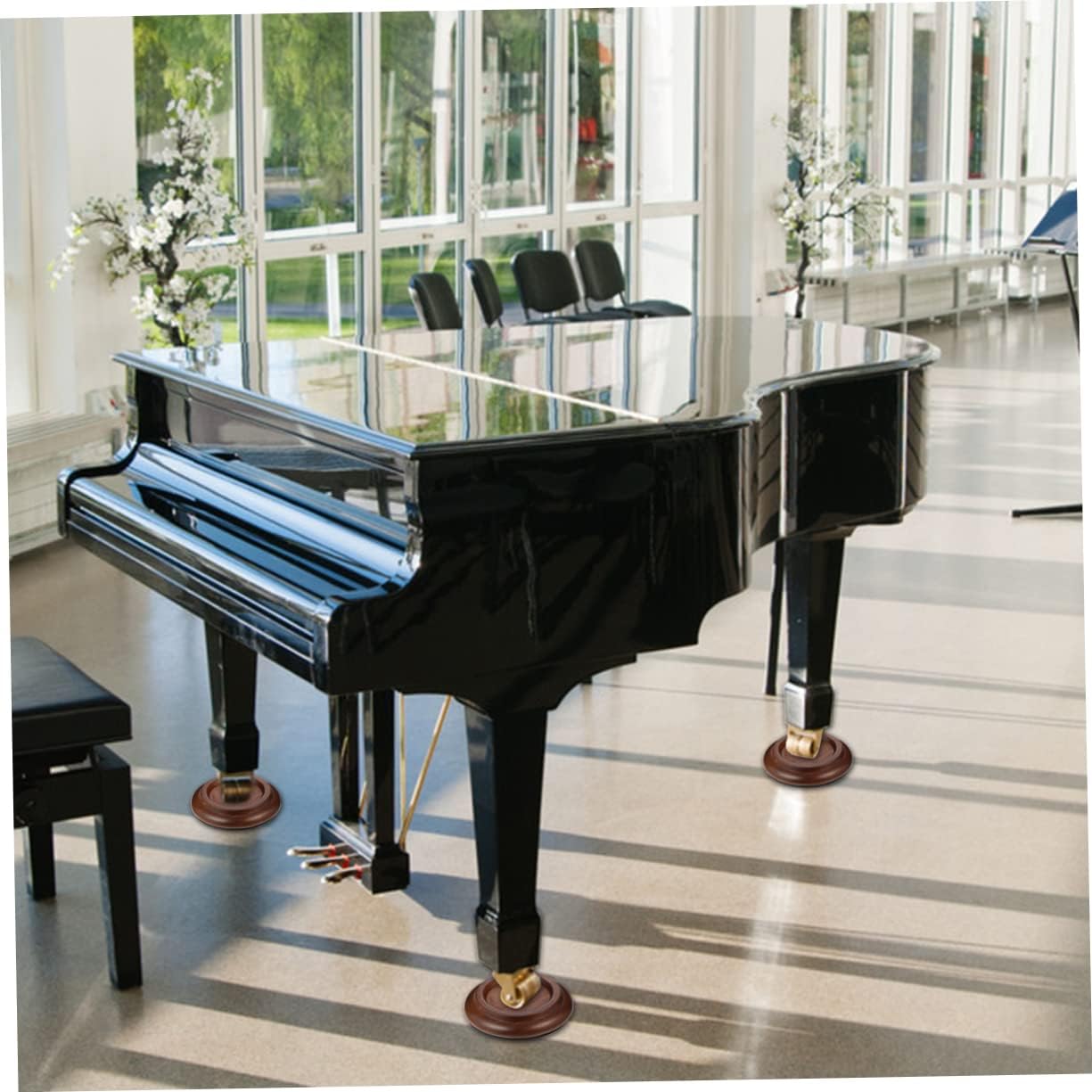 Package List 3 x floor mat Features - Size: About 12.40X12.40X2.20cm/4.87X4.87X0.86inch piano leg protector. - Material: Black walnut and EVA piano feet pads. - ColorDark Brown piano caster cups - It can securely support your upright piano for many years of use piano leg cups. - Caster cups designed to protect your hardwood floors, rugs and carpets wood piano cups. - With EVA bottom, non-skid, shockproof, sound insulation wood piano feet pads. - Special designed for grand pianos - 3 pcs in a set of package piano cups. - Designed to be placed under a piano's legs in order to protect floors and carpets piano leg pads.Goods Descriptionpiano leg cups Protects metal and brass wheels from rust or tarnish.piano leg pads The piano floor mat is covered with strong anti-skid function that helps it stay in place.wood piano cups Will not tear or distend surface under the piano weight maintaining a proper pedal height