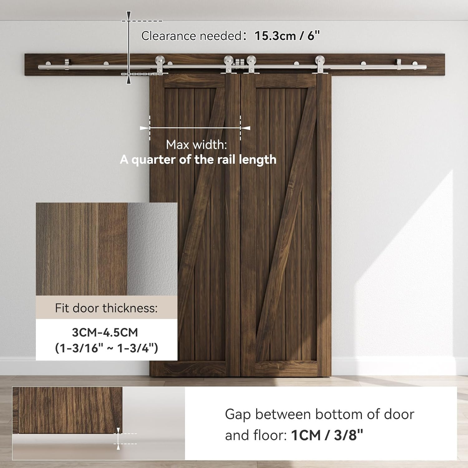 | Included Components | 6 FT Sliding Barn Door Hardware Kit |