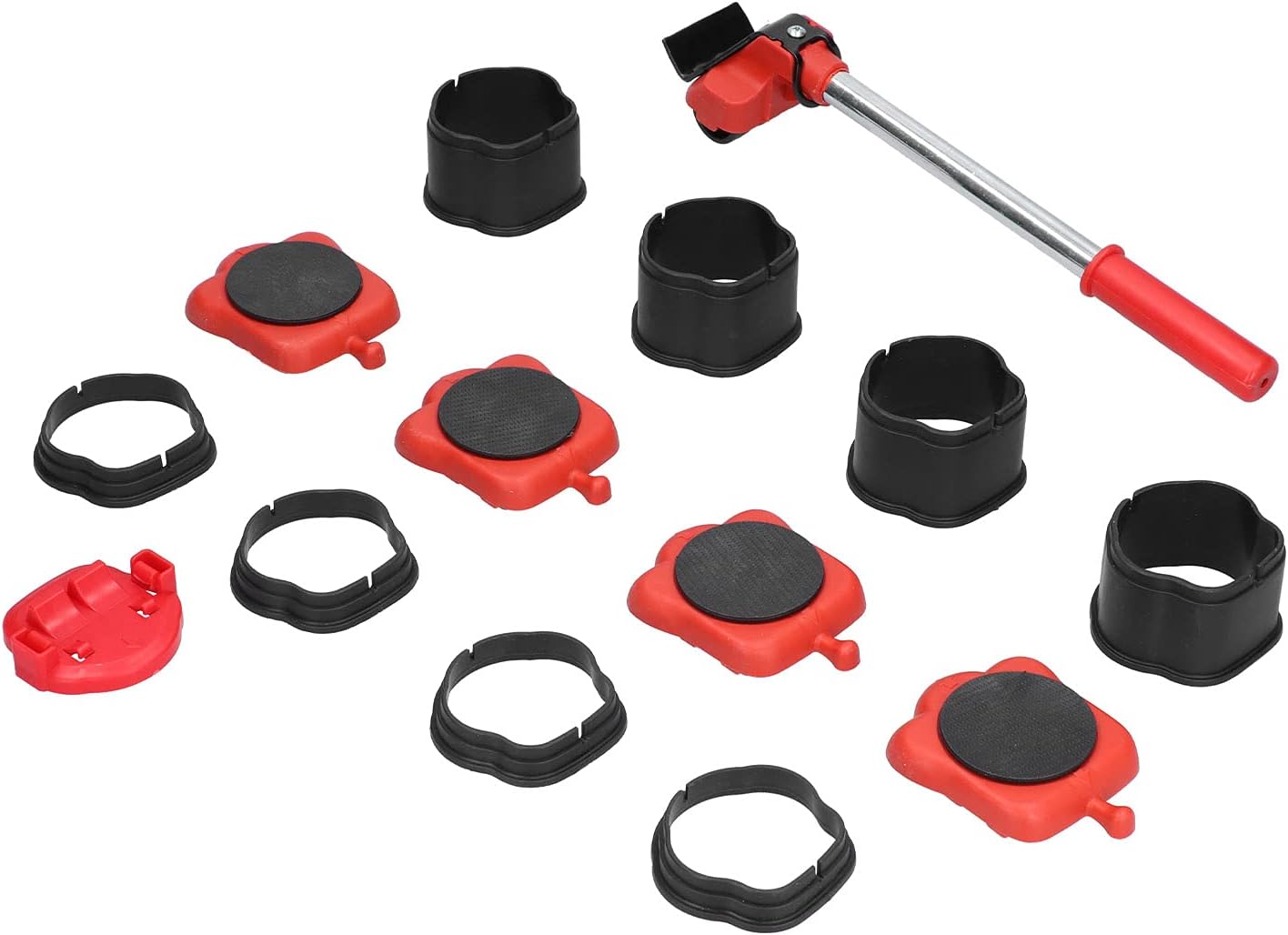 Specification:Item Type: Furniture Moving LifterMaterial: A3 iron + ABSBearing Weight: 150 kg / 330.7 lb(approx.)Quantity: 13PcsColor: RedPurpose: To carry heavy objectsPackage List:1 x Crowfoot4 x Pulley1 x Rocker7 x High Cushion