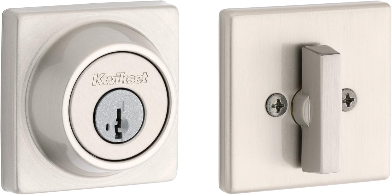 Product Description As the industry leader, Kwikset has provided trusted security for over 60 years and has become synonymous with security, peace of mind, style and innovation. The largest-selling deadbolt in America, the 600 series provides tough, effective protection at an affordable price. This single cylinder deadbolt can be locked or unlocked by a key on the outside, or the turn button on the inside. SmartKey Re-key Technology allows you to control who has access to your home. Re-key the lock yourself in seconds in 3 easy steps. Have you recently moved or had a child lose a key? It’s time to re-key. SmartKey provides the highest level of residential security and features BumpGuard to protect against lock bumping. The crisp, clean appearance of the Satin Nickel finish adds to the overall look of the product and brings a modern feel. Required door thickness- 1 3/8 to 1 3/4 inches. From the Manufacturer As the industry leader, Kwikset has provided trusted security for over 60 years and has become synonymous with security, peace of mind, style and innovation. Tustin's fashionable wave silhouette design is the perfect complement to homes with inspired style. The crisp, clean appearance of the Satin Nickel finish adds to the overall look of the product and brings a modern feel. This privacy knob is best used in interior bed and bath applications where privacy is required. Both knobs/levers are locked or unlocked by turn button inside. The outside knob/lever can be unlocked by an emergency key.