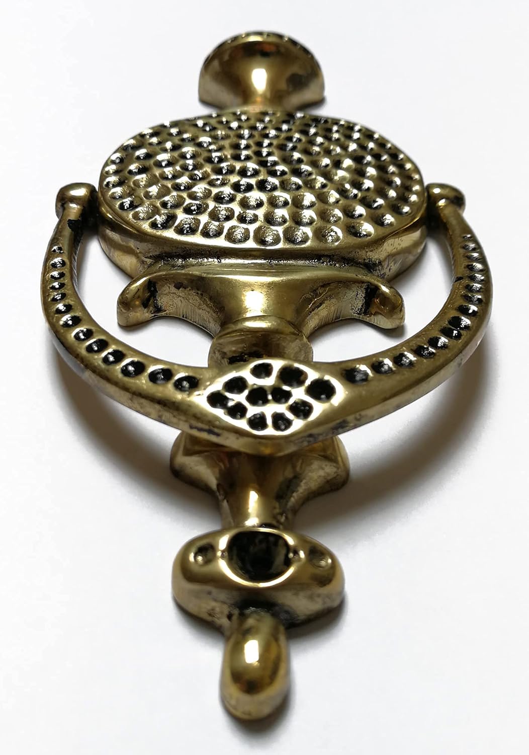 H: 195mm - 7 11/16 inch W: 90mm - 3 9/16 inch Weight: 305gr - 0.67 lb How It’s Made: Molten brass is poured in special sand moulds, forming an antique pattern with a gorgeous and elegant antique look. When cool, the hand polished with an unlacquered finish casts create an authentic effect and an “antique” style, due to not being machine finished. The beauty of unlacquered brass often described as a living finish, a finish that brings warm and inviting tones to modern and traditional spaces alike. The ageing process brings out an organic quality with distinct colours (verdigris, green blue spot sor dark dull gray) and texture variations. The more residue, pollution or salt that is in the air, the quicker the brass will tarnish. * Suitable for use on external or Internal wooden , UPVC and composite doors. * Surface mount fixing - securely screwed in from the front of the door with screws. This method of fixing involves screwing the door knocker into the door from the front, with no fixings visible from the rear side of the door. * It comes with the fixing screws. We do however recommend that you check with the manufacturer of the door for alternative fixings to suit your door type. * Due to the hand crafted nature of the products all measurements are approximate. These should be used as a guide only. Also your door knocker may vary slightly from photographs or due to problems with light photography, there may be some chromatic aberration. * All of our products go through rigorous quality control, however on occasion you may find small marks or imperfections that come about through sand moulding process.