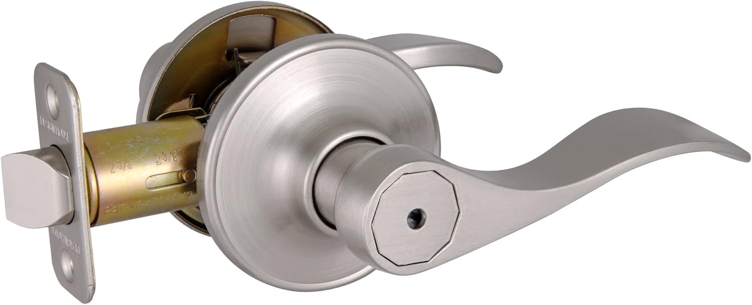 Product Description The Springdale Privacy Door Handle in oil rubbed bronze is ideal for bathrooms, bedrooms, and other spaces where privacy is needed. Featuring a turn-button lock, this reversible lever fits left- or right-hand doors and works with standard 1-3/8 in and 1-3/4 in thick doors. It installs with 2-3/8 in or 2-3/4 in backsets and includes a 1 in x 2-1/4 in radius corner faceplate and hardware. A 1/2 in nickel-plated latch bolt and 5-pin cylinder add security. ANSI Grade 3 certified, it’s backed by a 5-year limited mechanical and finish warranty. From the Manufacturer The Springdale Privacy Lever Set features a popular wave shaped lever and is easily incorporated into most architectural styles. The lever is reversible for use on right or left hand doors.