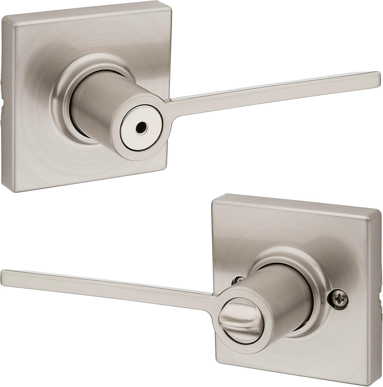 As the industry leader, Kwikset has provided trusted security for over 70 years and has become synonymous with security, peace of mind, style and innovation. Simple and understated, the Ladera lever will surely delight. The linear and unadorned look of the Ladera lever makes it an excellent choice for a transitional or contemporary themed décor. This privacy knob/lever is best used in interior bedroom and bathroom applications where privacy is required. Both knobs/levers are operated by the thumb turn on the inside. The outside knob/lever is unlocked by an emergency key. The crisp, clean appearance of the Satin Nickel finish adds to the overall look of the product and brings a modern feel.