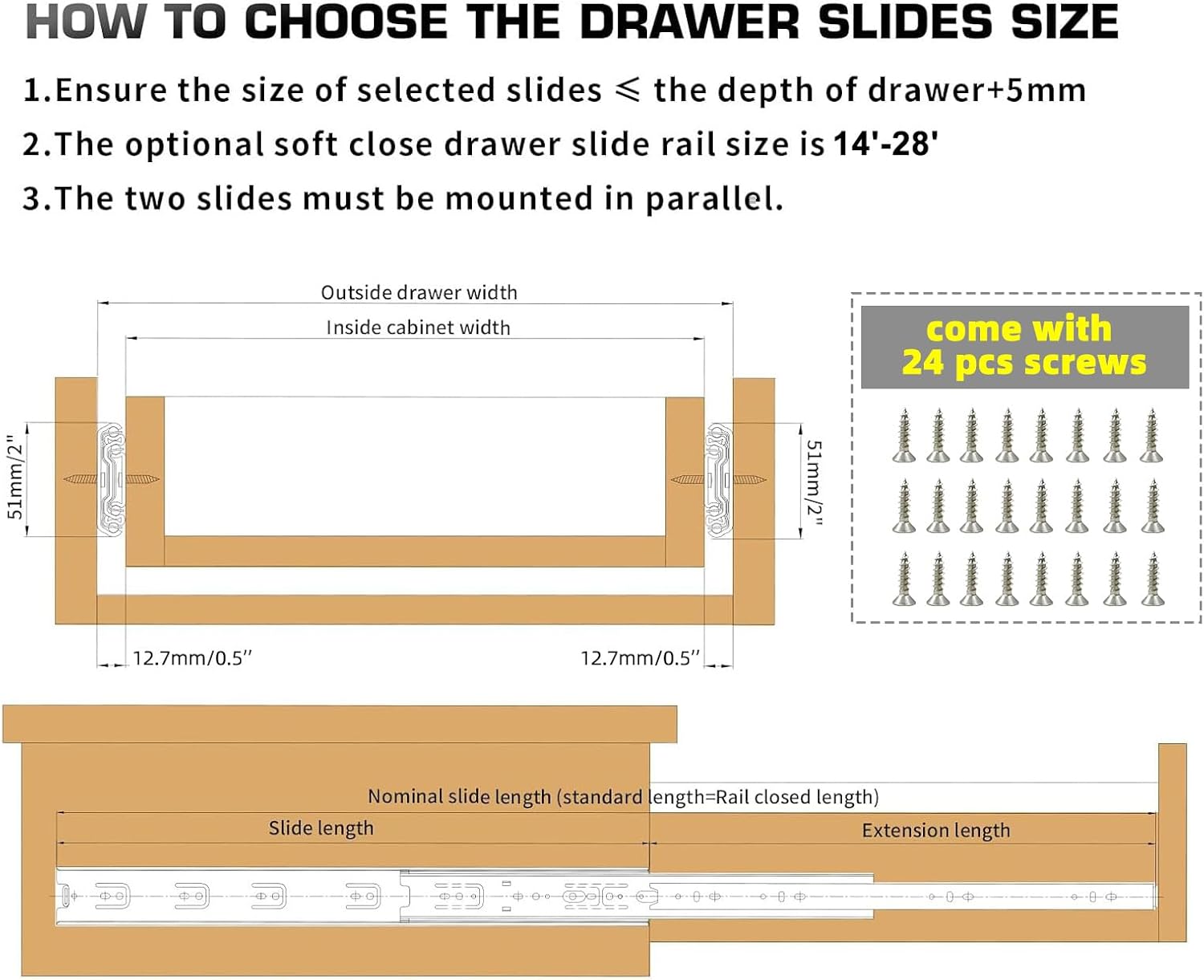 | Included Components | 24 pcs M4 screws, 24“ Heavy duty soft close drawer slides |