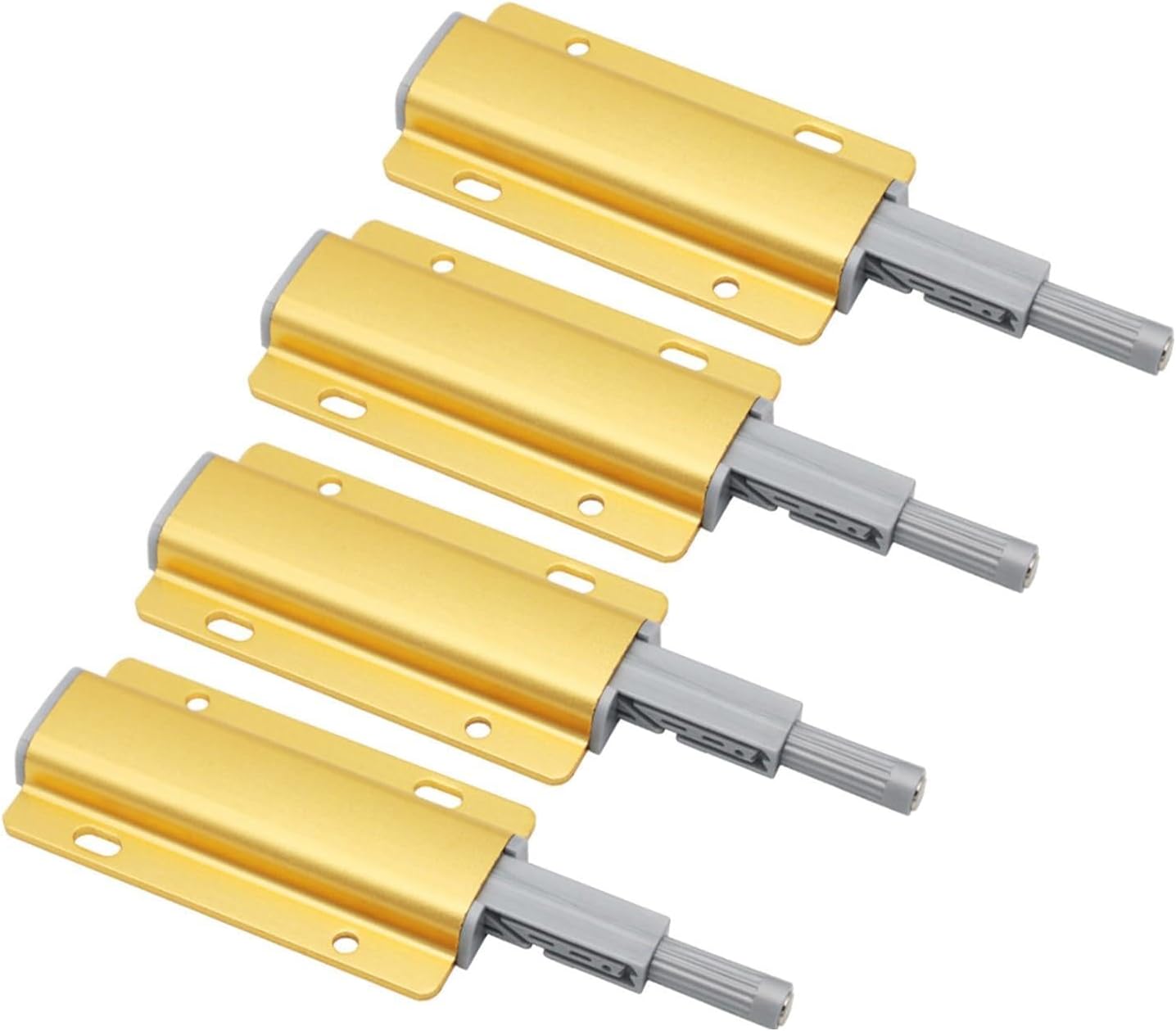 Features:100% .Built-in spring-loaded plunger, you can just simply press the door to latch or unlatch. Eliminates the need for handles or knobs. Create the clean, seamless look of no knobs. Suitable for using with hinges without self-closing feature.It can replay the cabinet pulls, just push it to open and push it to close the cabinet.Ideal for kitchens and bathrooms.Can also be used for most self-closing drawers.Protect your doors from slamming.Reduce the noise when you close the doors and drawers.Very easy to install.Material: ABS + Aluminum AlloyOpened size: approx. 143mm/5.63inchHole spacing: approx. 48mm/1.89inchFeatures: Ideal for wardrobe, drawers, cabinets, cupboard etc.Easy-installing, Reducing Noise, Protecting your doors from slamming.Color: Gold, SilverPackage list:4/10 x Magnetic Push To Open Cabinet CatchNote:1.Please allow 0.1-2cm error due to manual measurement.3.The color may have different as the difference display, pls understand.You have to and to it from the date received. If the item is in your possession more than , it will be considered used and NOT ISSUEA Item specifics:Diy supplies: WoodworkingCertification: NONEOrigin: Mainland China