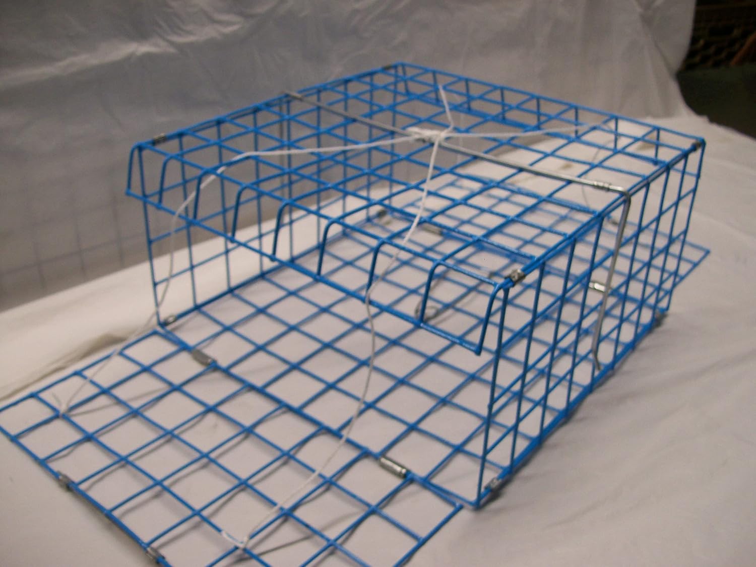 FIVE PACK.... Trap Dimensions When in Use.... Approx. 12" x 12" x 6", Coated, Blue, Two Door Model, E-Z Catch Model # P-1002-Blue Features: No Assembly Required, Ready to Use & Pre -Tied with One Heavy Duty High Quality Poly Pro Twine, color's may vary Coated Commercial Grade 16 Gauge Crab Pot Wire - The only wire in the world specifically designed and perfected for marine & saltwater use. Attached with Hartco clips squeezed together at almost 2000Lbs of force. Not the cheap o-rings others use, View our photo's, then compare for yourself.. Built in Galvanized Steel Bait Clip Galvanized Steel Stabilizer Bar Weighted Galvanized Rods on Doors... Open Every Time Great for storing in small spaces Simple Design, Ready to go in seconds... Compact, Folds down to less then one Inch.... Trap Measures 12" x 12" x 6" When Assembled, Folds down to 1-1/2 inches high... You've Tried The Rest, Now Crab The Best