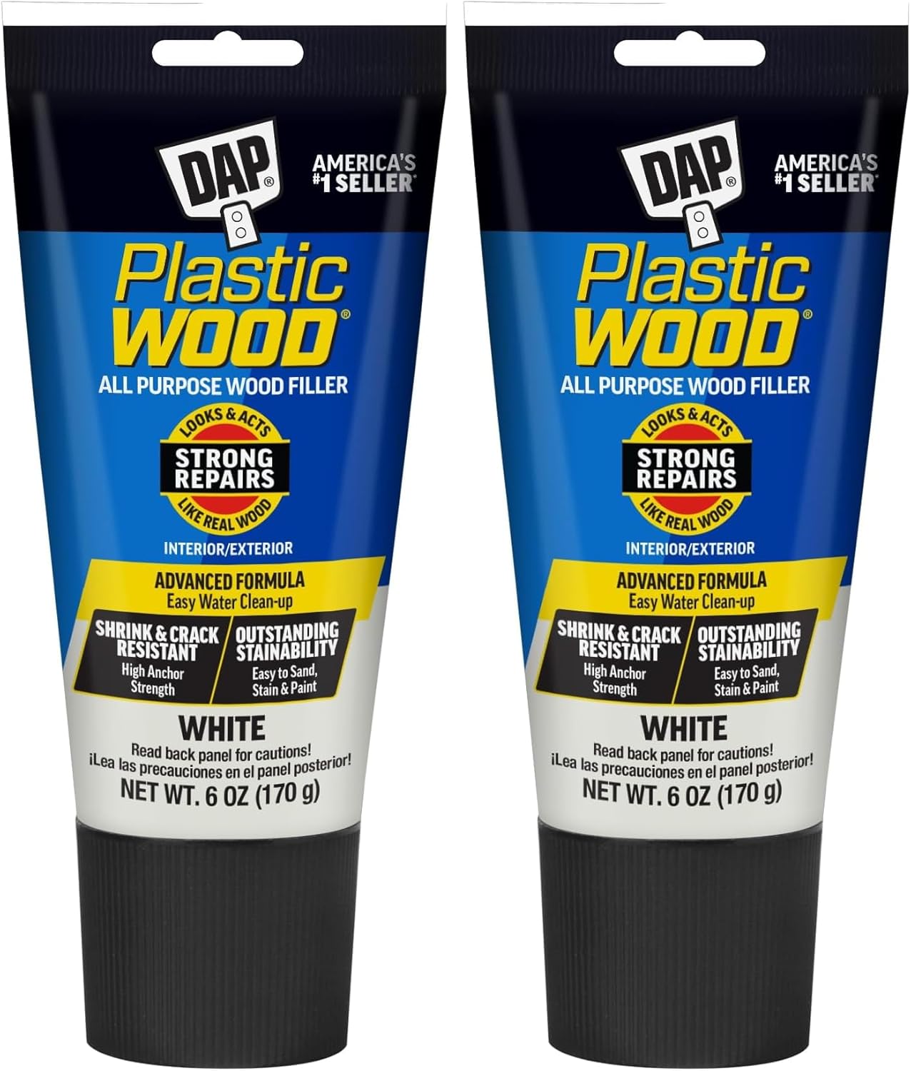 DAP plastic wood is a high quality, latex-based wood filler formulated to match various wood finishes—from a natural pine to dark walnut and several shades in between, including white. DAP plastic wood is the ideal choice whenever you need to repair cracks, gouges, holes and other surface defects on furniture, woodwork, molding, cabinets, paneling, plywood, windows, doors and even painted surfaces.