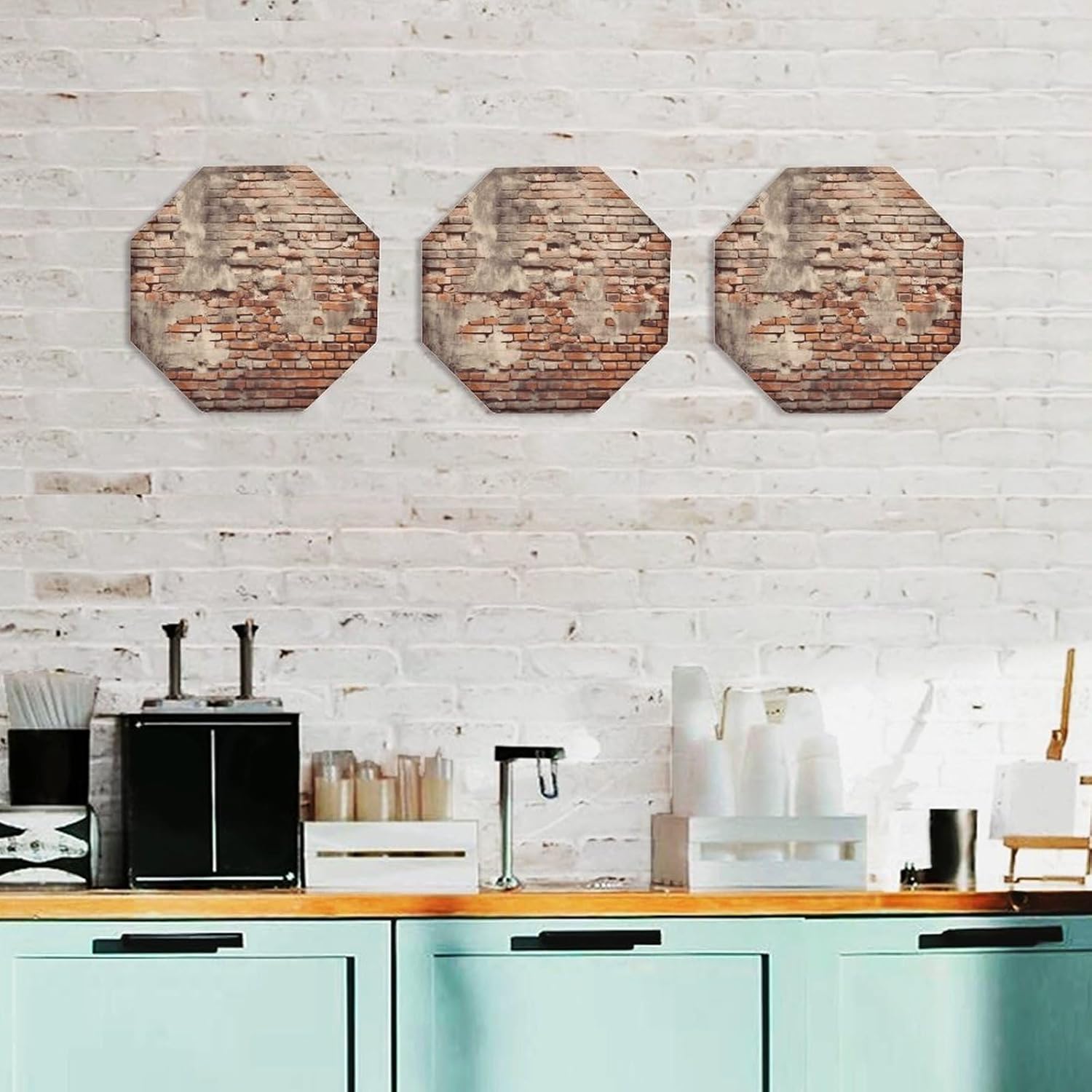 This modern abstract wall decoration brings a luxurious feel to your walls, creating a stylish home décor. It can be easily installed on any blank wall, adding texture and depth to your home.Personalized signs are perfect for kitchens, bathrooms, doors, garages, TV walls, living rooms, and other spaces. They can be hung in living rooms, bedrooms, hallways, offices, meeting rooms, and waiting areas. Use them on manhole covers, partition walls, or any other small, unique sign you desire.Our octagonal iron plate is the perfect gift because each of our octagonal iron Ancient Worn Brick Wall plates features a unique pattern, suitable for any occasion. The unique pattern adds a distinctive touch.Come and choose the decorative mural that suits you best!