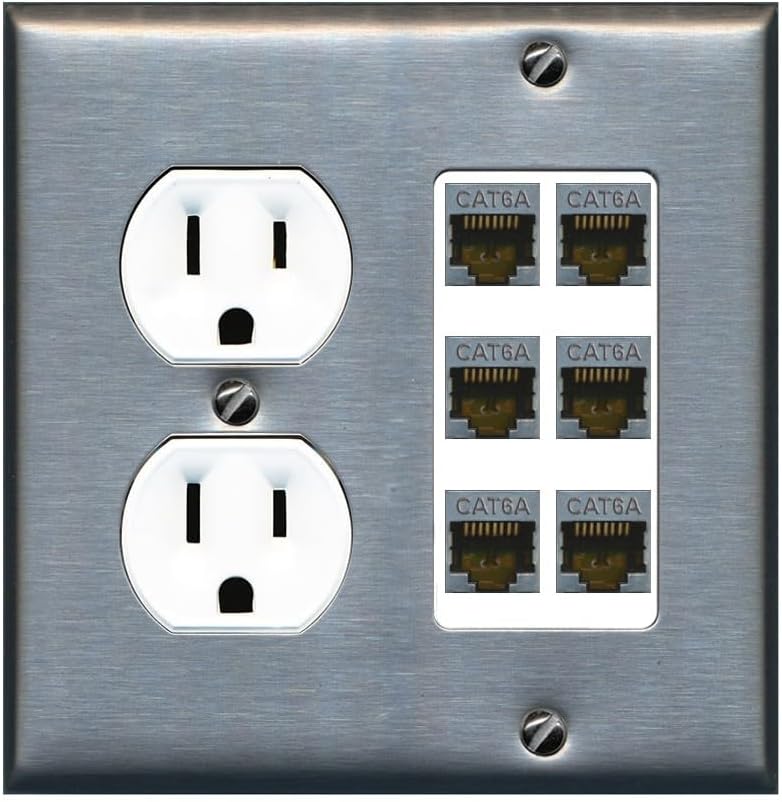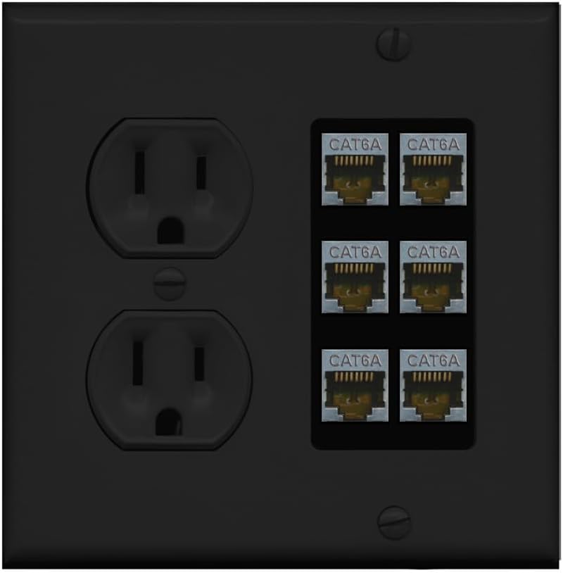 | Included Components | 15 Amp/125V Duplex Outlet, 2 Gang Round Plate, 6 x Female Jacks (Assembled), Screws |