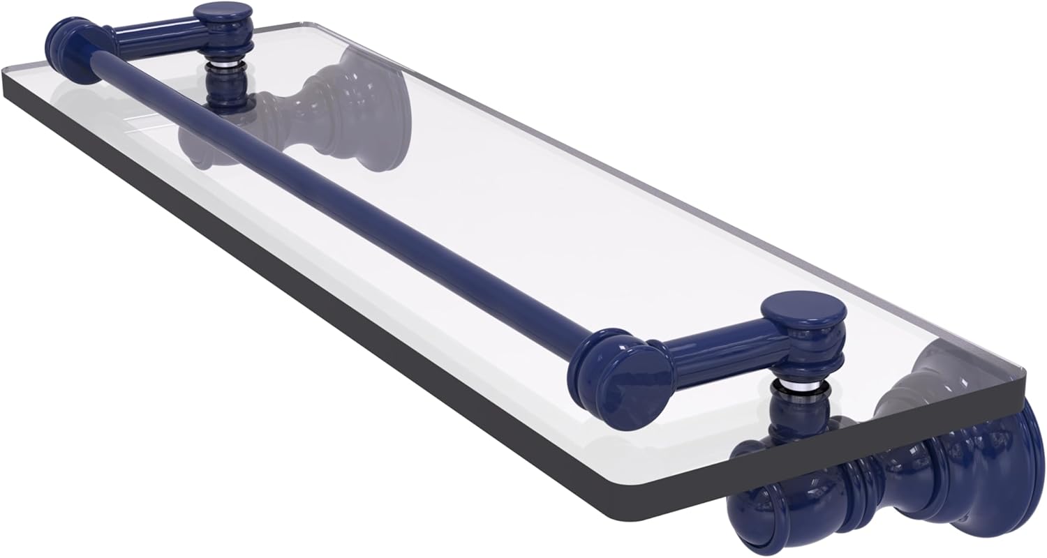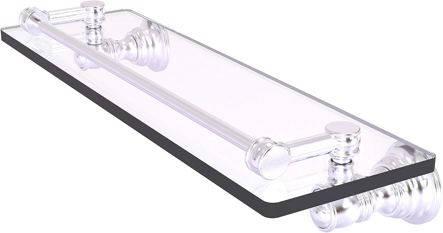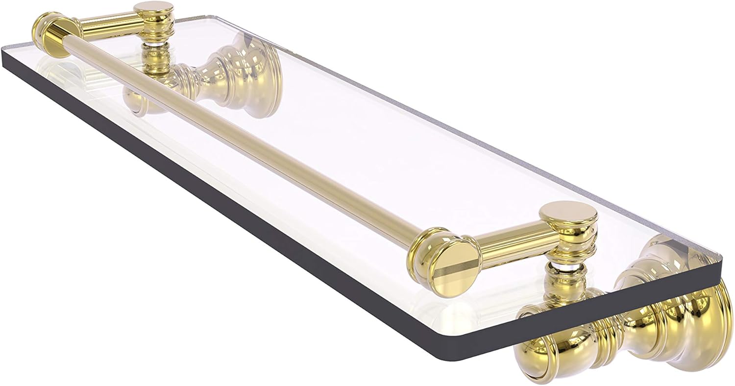 Reimagine your bathroom with this finely crafted gallery glass shelf. The gallery rail on the shelf is made of solid brass and will keep your items securely in place. Traditional style and superior quality resonate from this hand crafted accessory. Featuring thick, beveled-edge glass and solid brass hardware this shelf is crafted for durability strength and style. One of the many coordinating accessories in the Allied Brass Collection of accessories, this subtle gallery glass shelf is the perfect complement to your bathroom decor.