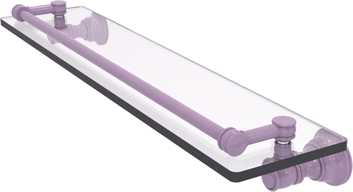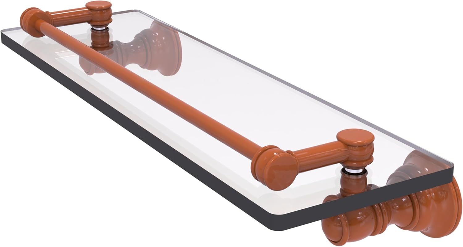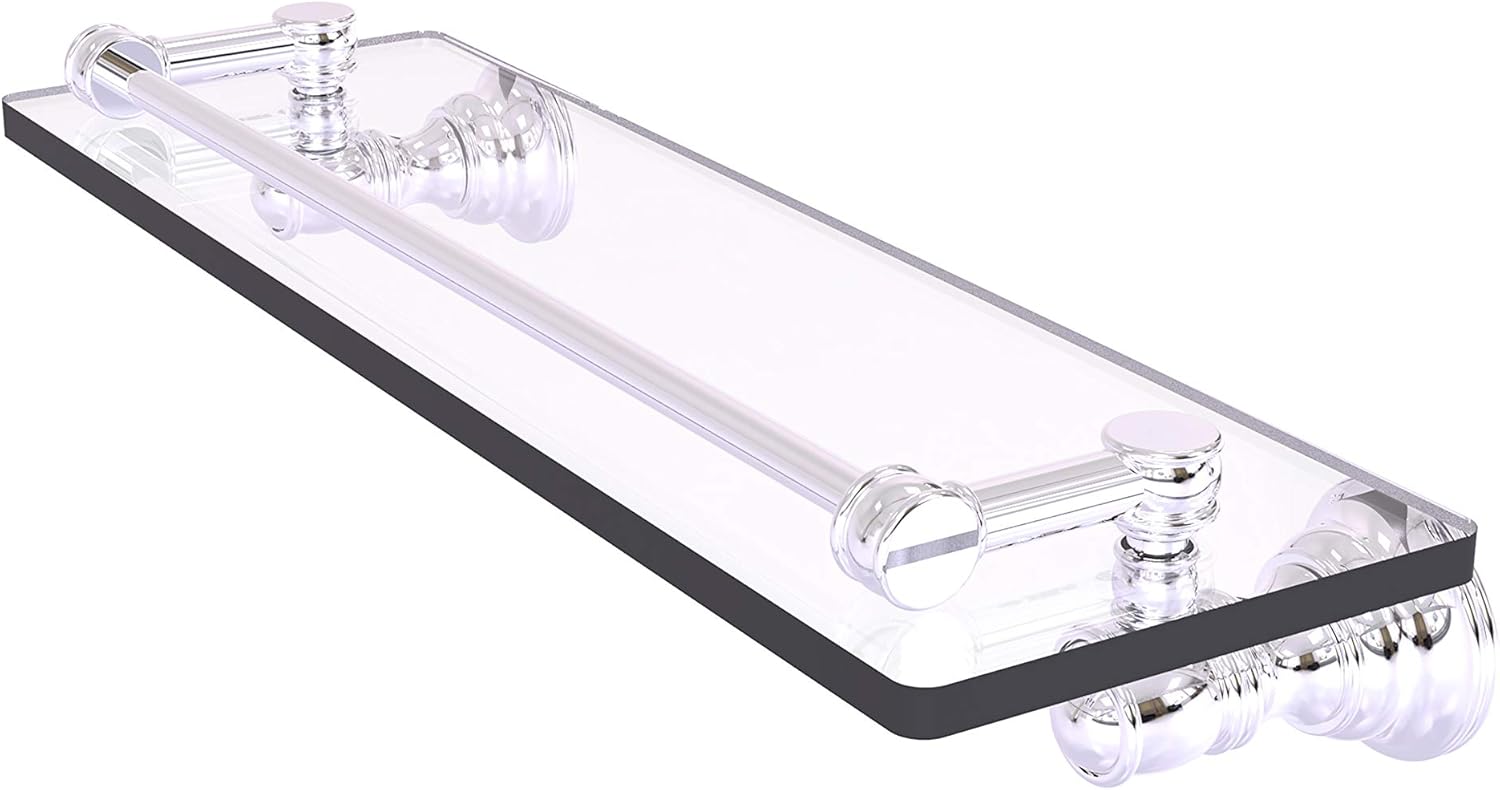Reimagine your bathroom with this finely crafted gallery glass shelf. The gallery rail on the shelf is made of solid brass and will keep your items securely in place. Traditional style and superior quality resonate from this hand crafted accessory. Featuring thick, beveled-edge glass and solid brass hardware this shelf is crafted for durability strength and style. One of the many coordinating accessories in the Allied Brass Collection of accessories, this subtle gallery glass shelf is the perfect complement to your bathroom decor.