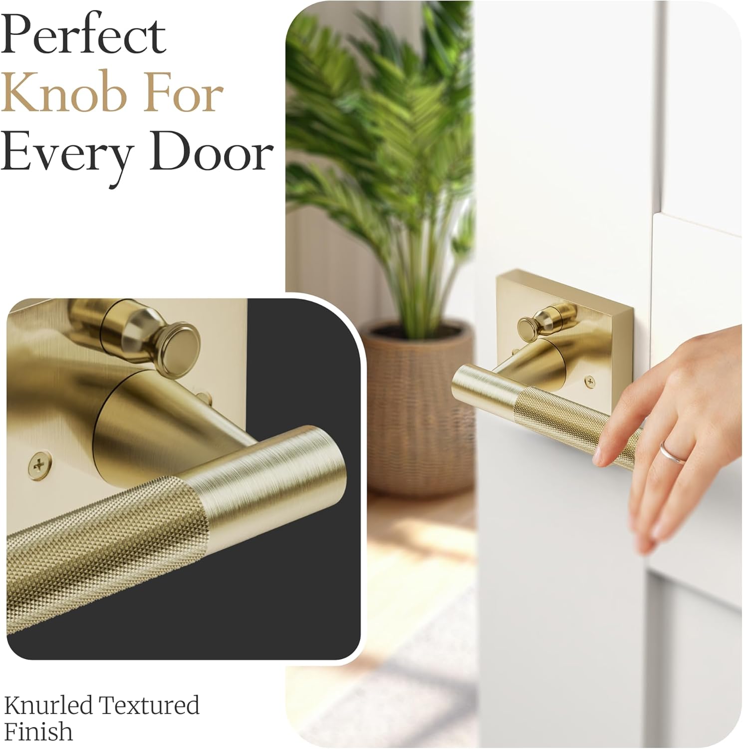Give your home the upgrade it deserves with P + D Architectural Hardware’s indoor door handles — the perfect combination of style, strength, and simplicity. These premium lever door handle interior are designed by seasoned architects who understand that every detail matters. Whether you’re replacing a bedroom door handle, installing a bathroom door handle or bathroom door lock, bathroom locks for doors or updating all your bedroom door handle with lock, closet door handles, these gold door handles interior brings timeless elegance and lasting performance to any space. Made from high-quality rust-proof zinc alloy with a stunning knurled texture and satin brass finish, these square door handles doesn’t just look expensive — it feels like luxury every time you open a door. Our soft gold door handle are built to fit doors 1 3/8" to 2" thick, with an adjustable backset and reversible design for left or right-hand use. Installation is effortless with all screws, latch, hex tool, and clear instructions included. These lever door handles install quickly and operate quietly with a smooth, secure spring latch and ½" throw dead latch for total privacy. Whether you’re styling a mid century modern door handle for your master suite or need brushed gold door handles interior-wide, our hardware makes an impact. Ideal for pantry door handle, bathroom door handle with lock, hall and closet lever handles, entry gold door handle, or french door handles, this lever door handle with lock delivers beauty and function in equal measure. Our inside door handle offer the ideal balance of elegance and safety, keeping your personal spaces private without sacrificing style. From modern door handles to bathroom handles, this interior door handle with lock outshines basic knobs or keyed door handle and elevates every room. Experience why customers are replacing their door lever handle & indoor door handle with lock with the premium gold knurled door handle interior with lock homeowners rave about.