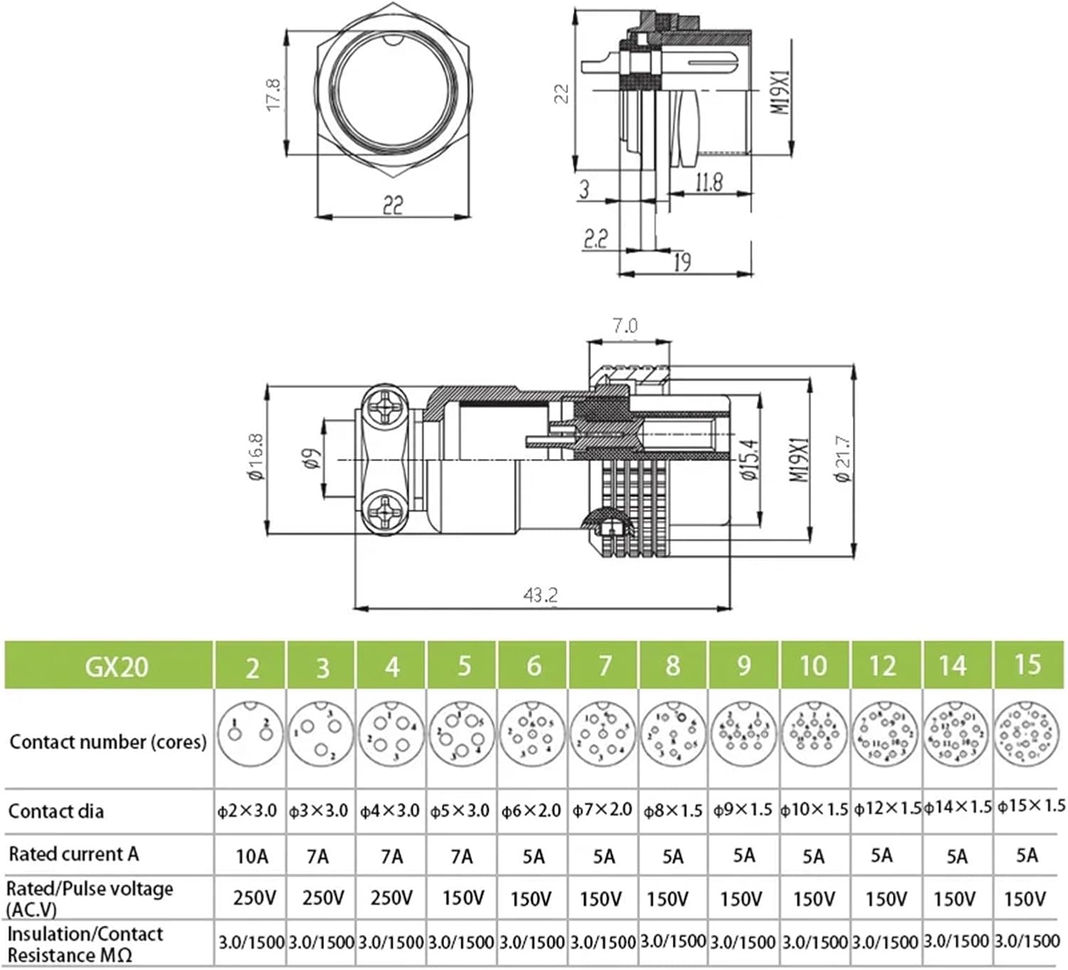 Split-Bolt ConnectorsProduct DescriptionGX20 nut type male and female connector 2/3/4/5/6/7/8/9/10/12/14/15 pin 20mm round wire panel aviation socket Connector type: GX20 nut type-2/3/4/5/6/7/8/9/10/12/14/15Rated voltage: 5A/150VPacking list: 1 set GX20 nut type male + female connector