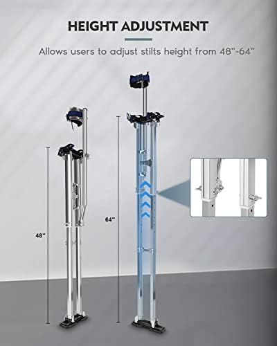 Introducing our premium Drywall Stilts, designed with an exquisite wing bolt mechanism for effortless height adjustment—no installation tools required! Tailored for both professionals and DIY enthusiasts, these stilts feature self-locking metal buckles that allow you to customize the tightness for optimal safety and comfort. The adjustable heel bracket accommodates various foot sizes, securing snugly with two screws to ensure a perfect fit. Crafted from lightweight yet robust materials, these stilts are easy to maneuver, making them ideal for a range of applications, including exterior wall work, tree trimming, ceiling cleaning, and stage performances. With minimal practice, you can master their use and enhance your productivity in any project. Concerned about noise? Our 24-40 inch drywall stilts are equipped with advanced shock-absorbing springs and a silent, non-slip rubber bottom that not only mitigates noise but also protects your floors from scratches. They can comfortably support up to 225 pounds, providing the stability and confidence you need to tackle your tasks. Worried about maintenance? Cleaning is a breeze due to the durable aluminum alloy construction. Simply wash them off and let them air dry—no rusting concerns here! Elevate your work experience with our Drywall Stilts that combine functionality, safety, and ease of use. Perfect for contractors, performers, or anyone looking to reach new heights efficiently!