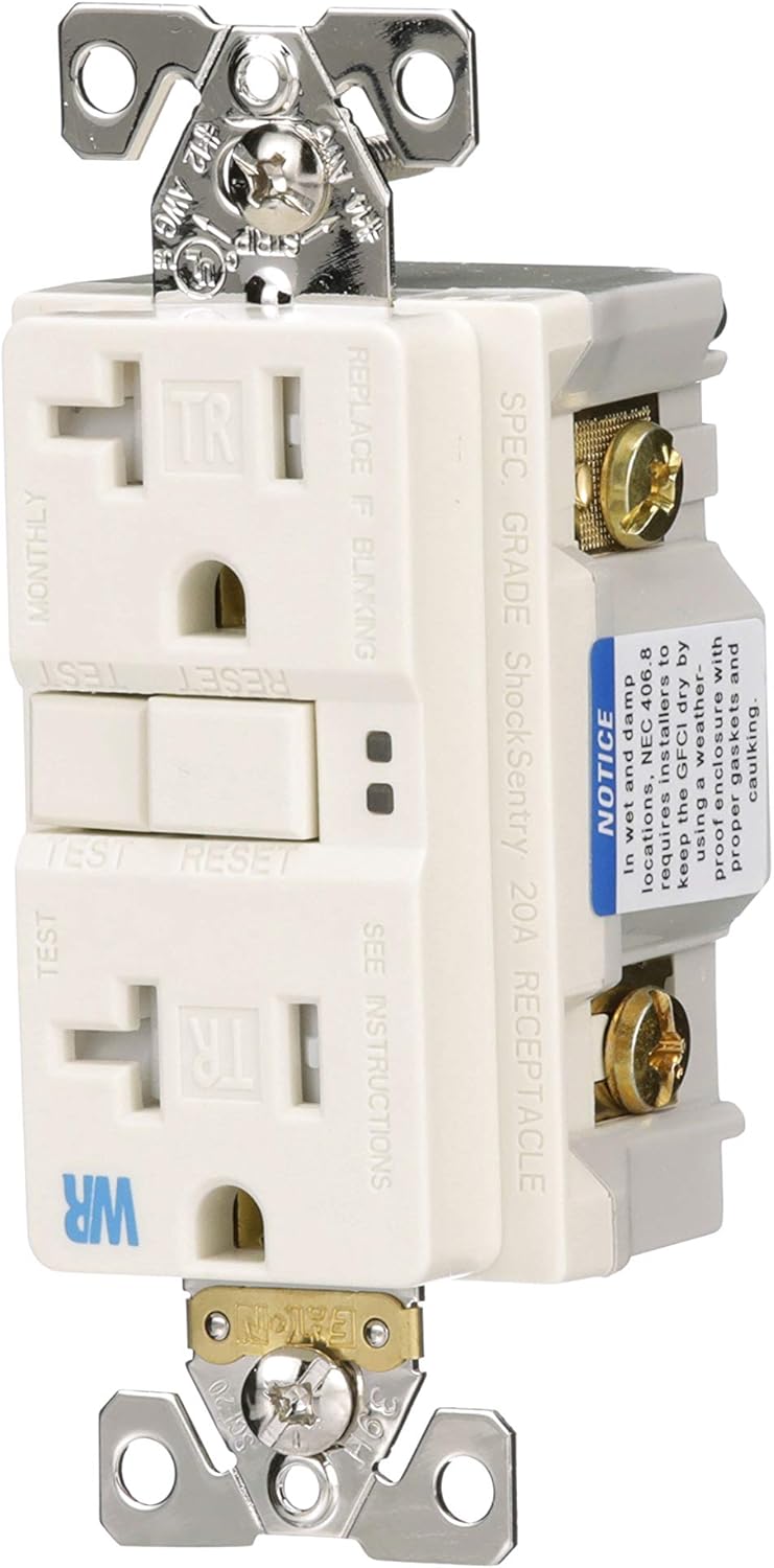 Eaton's GFCI Self-Test Tamper and Weather Resistant Duplex Receptacle provides protection from dangerous electrical shocks caused by ground faults. Our GFCI devices automatically self-test periodically to ensure GFCI protection and continuous safety. In addition to being tested to the highest standards to help ensure safety, Eaton's GFCIs will deny power and prevent re-setting if the device is no longer able to provide safe, protected power. The built-in indicator lights provide quick notification of a tripped or “end of life” condition. Additionally, tamper and weather resistant (TWR) GFCIs provide both tamper resistant safety and ensure weather resistant in wet and damp outdoor locations.
