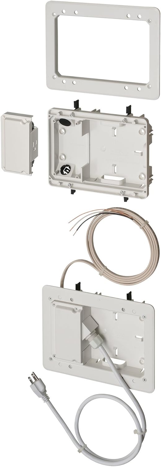 Arlington TVL508-1 Low Profile TV Box for Shallow Walls, 8-Inch x 5-Inch Box, 1/2-Inch or 5/8-Inch Drywall, 1-Pack. Used for installation of flat screen TVs (LCD, LED, Plasma). Suitable for shallow drywall depths of 1/2-Inch or 5/8-Inch, box depth is 1.25-Inch. Includes (1) TVL508 box and (1) UL Listed Decorator style receptacle. Save time with retrofit or new construction with convenient low-profile recessed 8" x 5" TV bridge kit. White trim is paintable, allowing for a complete finish. May be used with stud sizes: 2 x 2, 2 x 3, 2 x 4, or Larger, ETL Listed. cUL Listed, industry standards for safety and quality. Made In USA. In the event any of our products are found to be defective, we will replace them with new product free of charge. The time limit for this warranty is one year following the date of sale or one year after the date of installation, whichever is the earlier date. This warranty does not apply when the product is used for any purpose other than the intended use as described in the Arlington literature. This warranty does not apply when the product is used for any installation which would violate the national electrical code or any code which takes precedence in a particular jurisdiction. Labor is not included. Total power outlets:2