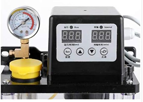 Operation instruction: 1.Set the time interval, long press "SET" key to enter set up status, short press the "SET" key again can choose you need to set up the numbers, press ▲▼ the key, corresponding SET number. First enter the time interval (0-999Min), long press "SET" key to enter running time (0-999 seconds), long press "SET" key to save the set time. 2.The alarm buzzer continuously ring, display shows "ERO" for the oil level alarm, please add gas the fuel tank. 3. Press the inching button, hold down the inching button pump to inter working condition. Parameter: 1. Input voltage:110V 2. Rated Rotary Speed:3360rpm/Min 3. Motor power output:25W 4. Current:0.35A 5. Rated Pressure:10Kgf/cm2 6. Max.Pressure:12Kgf/cm2 7. Volume:2L 8. Discharge capacity:50ml/Min 9. Viscosity:30~1000 C.st 10. Oil-caliber:6mm 11. Size:193*125*227mm 12. Center Pitch:110-148mm Include: 1 x Set of Automatic Lubrication Pump