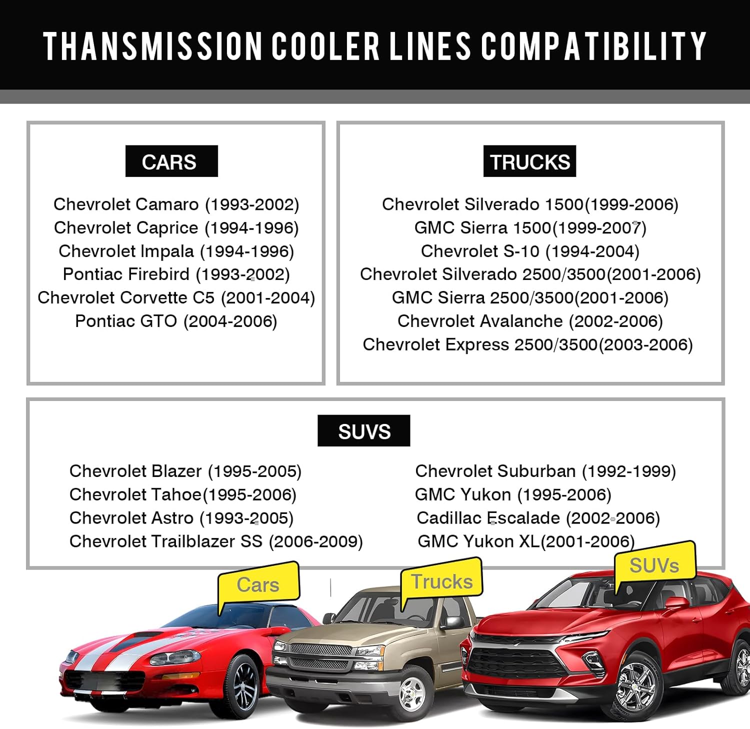 | Included Components | 2Pcs x 1/4"NPSM x -6 Transmission Fittings, 15 FT AN-6 Steel Black Nylon Braided Hose, 2Pcs x 6 An Straight Hose Ends, 2Pcs x 1/4"NPT x -6 Radiator Fittings, 2Pcs x 6 An 90 Degree Hose Ends |