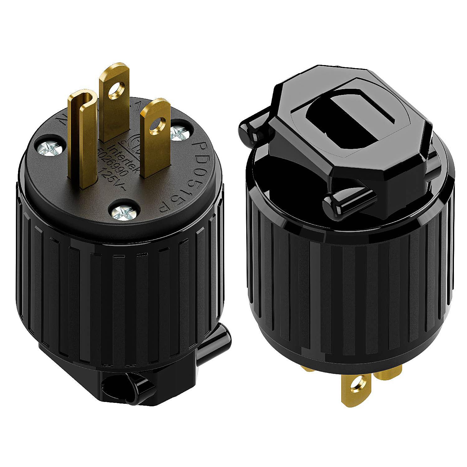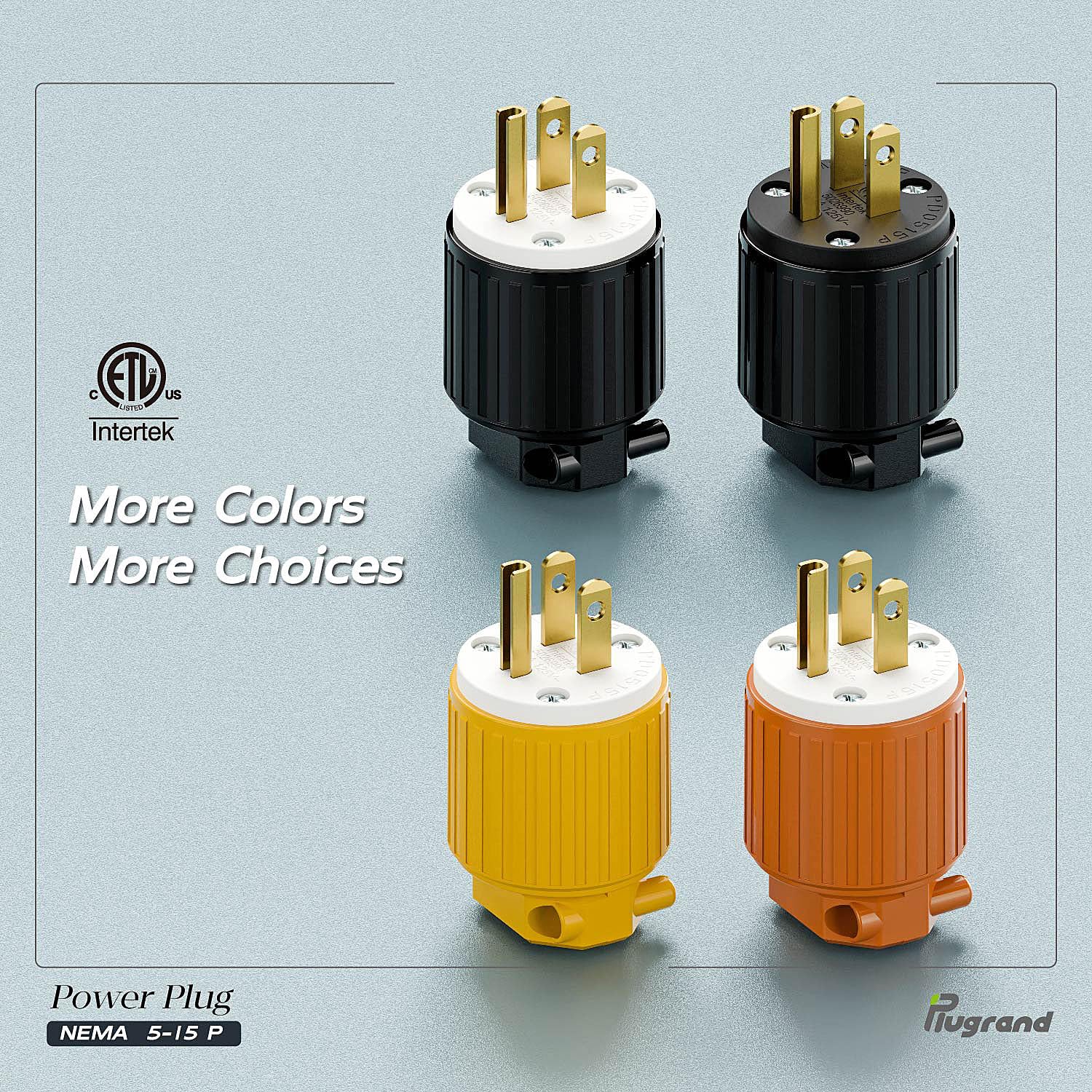Plugrand 10 PACK 3-Prong Replacement Plug Core Specifications & DetailsModel: NEMA 5-15P Male PlugCurrent & Voltage Rating: 15 Amp, 125 VoltMaximum Power: 1875 WattsBlade Configuration: 3-Prong, Grounded PlugSafety Certification: ETL cETL Listed, compliant with US & Canadian safety standards.Conductor Material: Pure Copper Blades for optimal conductivity and minimal voltage drop.Housing Material: UL 94-V0 Flame-Retardant Nylon, offering excellent impact resistance, corrosion resistance, and high-temperature tolerance.Wiring Method: Rewirable Plug design with clearly marked Screw Terminals.Compatible Wire Gauge: For 3-Conductor 16AWG, 14AWG, 12AWG cable.Compatible Cable Types: SJT, SVT, STO, SJTW, etc.Color: Black