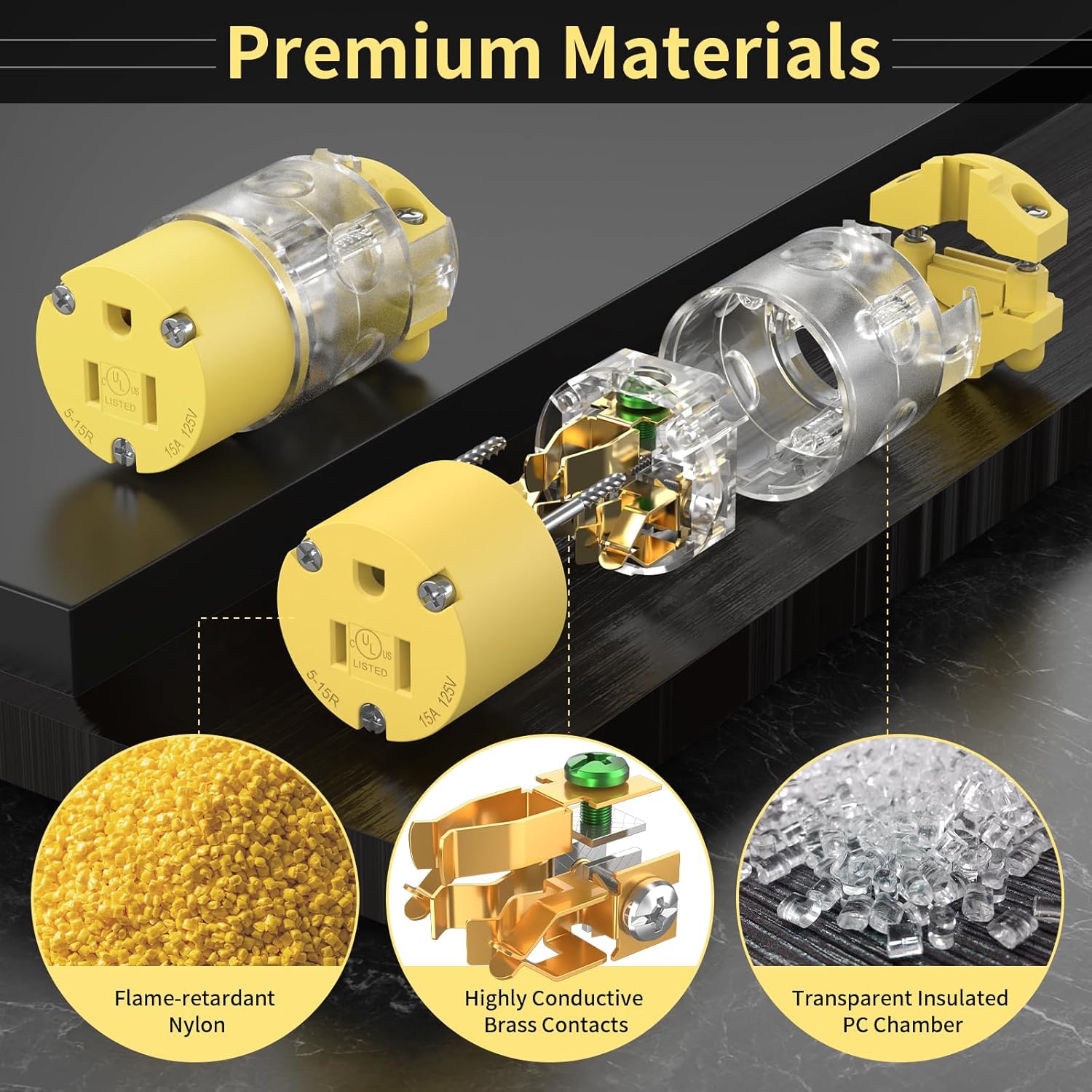 12-Pack 110V Female Plugs Receptacles Illuminated Electrical Outlets Drop Cord Extension Cord Replacement Ends with Green Neon Light NEMA 5-15R 15 Amp 120 Volt UL Listed
