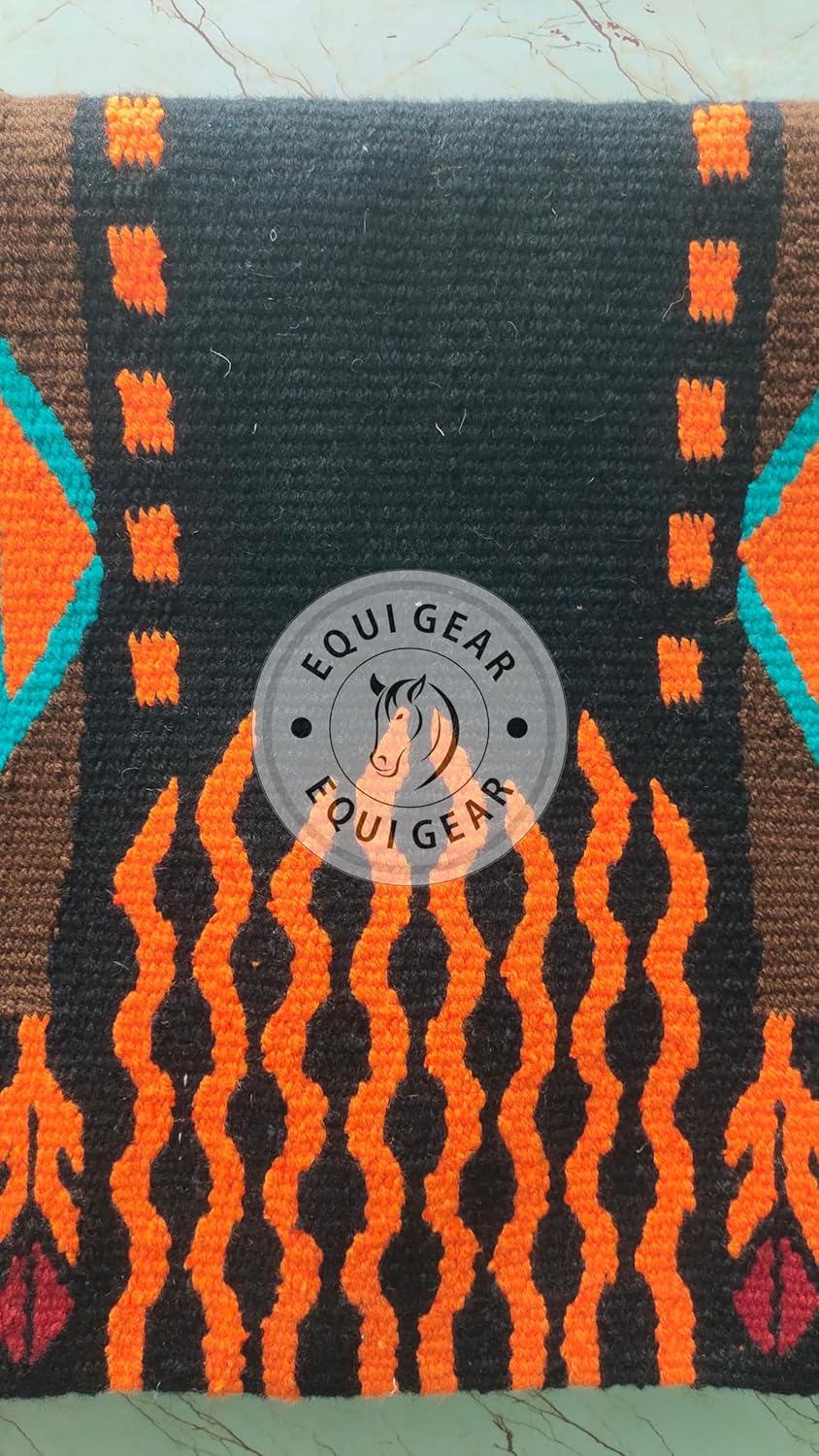 A horse Western show saddle blanket made from New Zealand wool is a premium equestrian accessory known for its quality and performance. This type of saddle blanket is highly regarded in the Western riding community for its excellent craftsmanship and the exceptional properties of New Zealand wool. Here's a detailed description of a Western show saddle blanket made from New Zealand wool: Materials and Construction: New Zealand Wool: New Zealand wool is celebrated for its superior quality and attributes. It is soft, fine, durable, and known for its moisture-wicking properties, making it an excellent choice for equestrian textiles. Handcrafted: Many high-quality Western show saddle blankets are handcrafted to ensure meticulous attention to detail. Skilled artisans create these blankets, often using traditional weaving techniques. Thickness and Padding: A Western show saddle blanket made from New Zealand wool is designed to be thicker and more padded than standard saddle pads. This added padding offers superior comfort and shock absorption for the horse's back. Aesthetic Features: Intricate Designs: These blankets are renowned for their intricate and visually stunning designs. The use of New Zealand wool allows for vibrant and richly detailed patterns that catch the eye and enhance the overall presentation. Traditional Patterns: Traditional Western motifs, such as geometric shapes, Native American-inspired designs, and Southwestern patterns, are often incorporated into the blanket's design. Coordinated Colors: Show blankets made from New Zealand wool come in an array of coordinated colors to match the rider's outfit, tack, and the horse's coat, contributing to a cohesive and harmonious appearance. Functional Aspects: Moisture-Wicking: New Zealand wool's natural moisture-wicking properties help keep the horse's back dry and comfortable during a performance. It effectively absorbs and dissipates moisture, reducing the risk of discomfort or skin issues. Shock Absorption: The ample padding of these blankets provides excellent shock absorption, distributing the rider's weight evenly and protecting the horse's back from pressure and impact. Sizing and Fit: They are available in various sizes to accommodate different saddle styles and horse breeds. They are typically contoured to fit under the saddle and secured with girth or saddle ties. Versatility: Multiple Disciplines: While commonly used in Western pleasure and reining events, these blankets are versatile and suitable for various Western riding disciplines, including trail riding, horsemanship, and western equitation. Maintenance: Cleaning and Care: Show blankets made from New Zealand wool require proper care to maintain their appearance. Cleaning methods often involve gentle washing and hand drying to preserve the wool's properties and the blanket's intricate design. Competition-Ready: Enhanced Presentation: The combination of New Zealand wool's quality and the elaborate designs of these blankets ensures a polished and professional presentation in the show ring. In summary, a Western show saddle blanket made from New Zealand wool is a high-end equestrian accessory that combines quality, functionality, and aesthetics. It is crafted from New Zealand wool, known for its exceptional properties, and is highly regarded for its moisture-wicking capabilities and shock absorption. These blankets boast intricate designs, come in coordinating colors, and are suitable for various Western riding disciplines. Proper care and maintenance are vital to preserve the blanket's performance and appearance for competition.