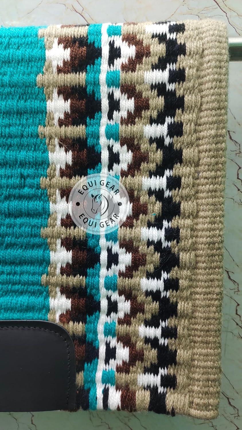 A horse Western show saddle blanket made from New Zealand wool is a premium equestrian accessory known for its quality and performance. This type of saddle blanket is highly regarded in the Western riding community for its excellent craftsmanship and the exceptional properties of New Zealand wool. Here's a detailed description of a Western show saddle blanket made from New Zealand wool: Materials and Construction: New Zealand Wool: New Zealand wool is celebrated for its superior quality and attributes. It is soft, fine, durable, and known for its moisture-wicking properties, making it an excellent choice for equestrian textiles. Handcrafted: Many high-quality Western show saddle blankets are handcrafted to ensure meticulous attention to detail. Skilled artisans create these blankets, often using traditional weaving techniques. Thickness and Padding: A Western show saddle blanket made from New Zealand wool is designed to be thicker and more padded than standard saddle pads. This added padding offers superior comfort and shock absorption for the horse's back. Aesthetic Features: Intricate Designs: These blankets are renowned for their intricate and visually stunning designs. The use of New Zealand wool allows for vibrant and richly detailed patterns that catch the eye and enhance the overall presentation. Traditional Patterns: Traditional Western motifs, such as geometric shapes, Native American-inspired designs, and Southwestern patterns, are often incorporated into the blanket's design. Coordinated Colors: Show blankets made from New Zealand wool come in an array of coordinated colors to match the rider's outfit, tack, and the horse's coat, contributing to a cohesive and harmonious appearance. Functional Aspects: Moisture-Wicking: New Zealand wool's natural moisture-wicking properties help keep the horse's back dry and comfortable during a performance. It effectively absorbs and dissipates moisture, reducing the risk of discomfort or skin issues. Shock Absorption: The ample padding of these blankets provides excellent shock absorption, distributing the rider's weight evenly and protecting the horse's back from pressure and impact. Sizing and Fit: They are available in various sizes to accommodate different saddle styles and horse breeds. They are typically contoured to fit under the saddle and secured with girth or saddle ties. Versatility: Multiple Disciplines: While commonly used in Western pleasure and reining events, these blankets are versatile and suitable for various Western riding disciplines, including trail riding, horsemanship, and western equitation. Maintenance: Cleaning and Care: Show blankets made from New Zealand wool require proper care to maintain their appearance. Cleaning methods often involve gentle washing and hand drying to preserve the wool's properties and the blanket's intricate design. Competition-Ready: Enhanced Presentation: The combination of New Zealand wool's quality and the elaborate designs of these blankets ensures a polished and professional presentation in the show ring. In summary, a Western show saddle blanket made from New Zealand wool is a high-end equestrian accessory that combines quality, functionality, and aesthetics. It is crafted from New Zealand wool, known for its exceptional properties, and is highly regarded for its moisture-wicking capabilities and shock absorption. These blankets boast intricate designs, come in coordinating colors, and are suitable for various Western riding disciplines. Proper care and maintenance are vital to preserve the blanket's performance and appearance for competition.