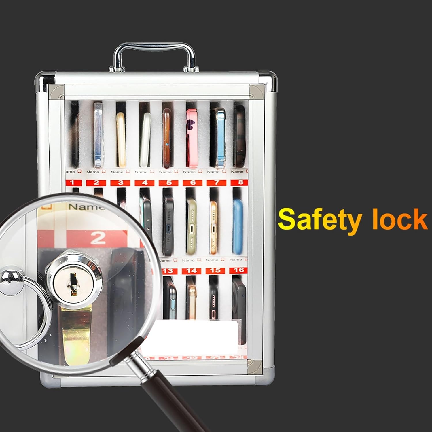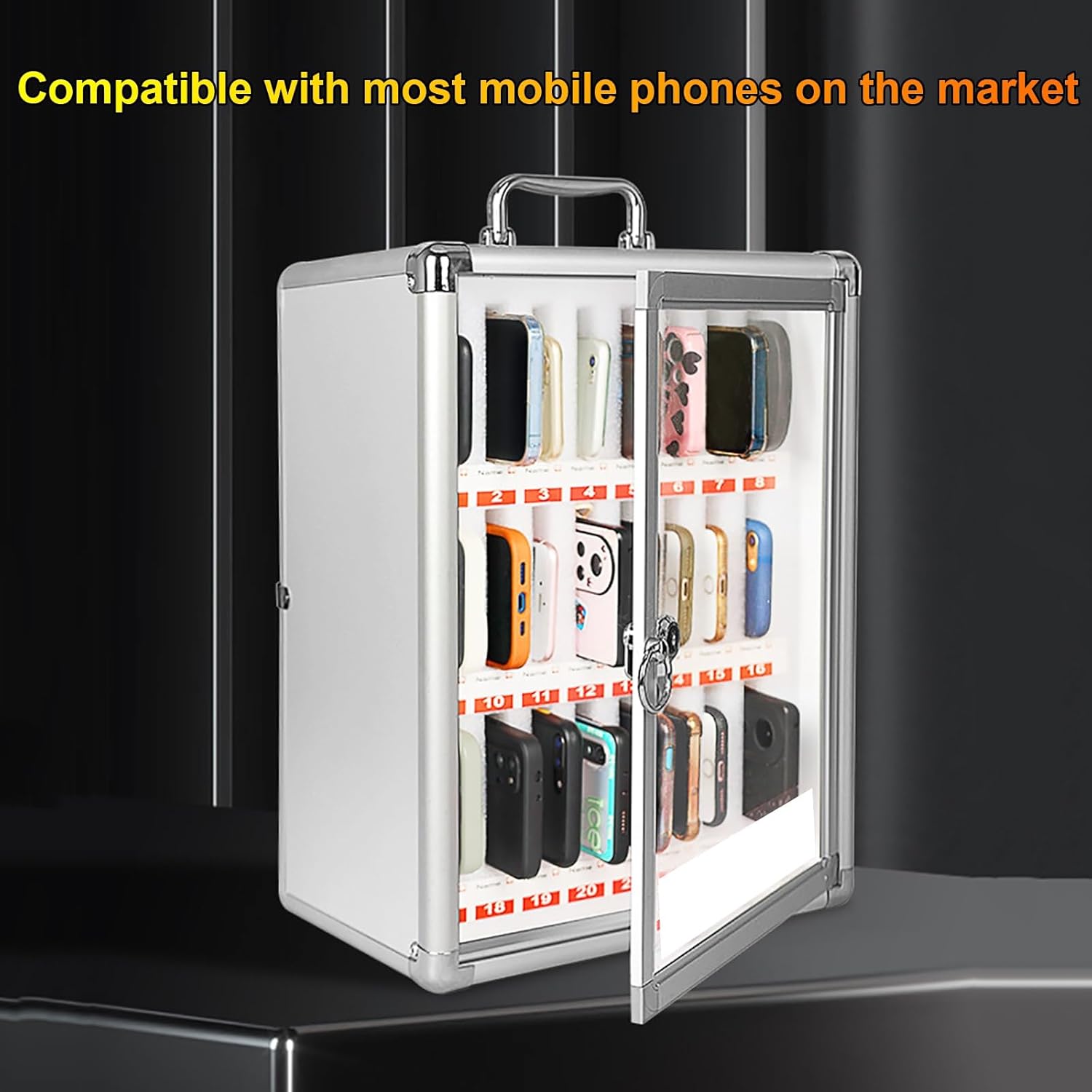 Phone Safe School Storage Box:Product Description This mobile phone safe can be hand-held, wall-mounted or desktop placed. Name:: Mobile phone safe, cell phone locker, cell phone jail Material:: Stainless Steel Number of mobile phones that can be stored:: 12/24/36/48/60 digits Size:: 12 Slots:9x8x10inches , 24 Slots:11x8x15inches , 36 Slots:13x8x19inches , 48 Slots:16x8x19inches , 60 Slots:16x8x24inches Warm reminder: We only sell cell s, excluding other reference items. Different measurement methods have slightly different sizes. There may be an error of 1-3CM, please refer to the actual product. Actual colors and photos may be slightly different due to different shooting tools, lighting and display parameters. We have many similar products, welcome to our store!