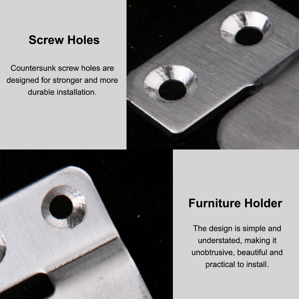 Specification: Name: Wall Hanging Bracket Material: Stainless Steels Size: As Shown Hole Diameter: 6mm/0.23in Thickness: 1.5mm/0.06in Installation Thickness: 10mm-30mm/0.39-1.18in Package Included: 8PCS (4 Sets) * Wall Hanging Brackets