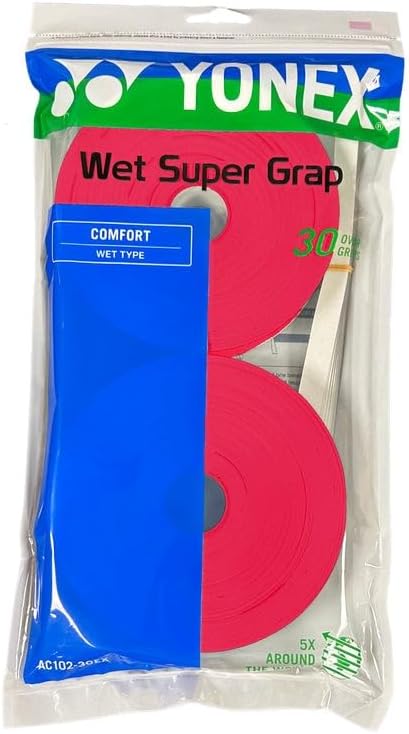 Experience superior control and comfort on the court with the Yonex Wet Grap Overgrip 3-pack. Designed for serious players in badminton, tennis, squash, and racquetball, this premium overgrip provides an outstanding tacky feel combined with excellent absorbency, ensuring your grip remains firm and confident even during the most intense rallies. The Wet Grap is a favorite among professionals and enthusiasts alike for its unique ability to maintain its "tacky" sensation throughout prolonged play. Its durable construction ensures a long-lasting performance, resisting wear and tear while providing consistent feedback from your racquet. Each pack contains three individual overgrips, allowing you to re-grip multiple racquets or have spares ready for when you need them.