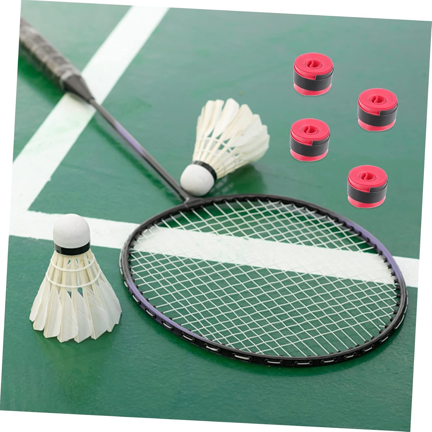 Package Include 60 x Racket Grip Tapes Features -Material: PU Racket Perforated Tapes -It is a tool when you are practicing tennis or badminton, reducing the handle to fall out of your hand due to the sweat Multi-function Racket Tapes. -Lightweight, stretch, easy to carry and use, it is to reduce the slippage of badminton or tennis racket Racket Protective Tapes. -The excellent workmanship of our product will bring you a experience Racket Overgrips Tapes. -Made from material, and reusable. Great for protecting tennis or badminton rackets Tapes for Racket. -Though it is simple , but it's so when you use it Racket Handle Tapes.Goods DescriptionSweat Absorbent Racket Bands Suitable for tennis racket, baseball bat, etc.Absorbent Grip Tapes In adoption of PU material, these racket grip tapes are and .Racket Absorbent Tapes Increase friction, reduce sliding.Lightweight Racket Tapes They have the sweat absorption and anti-slip effects.Tennis Racket Grip Tapes Great for outdoor ball games