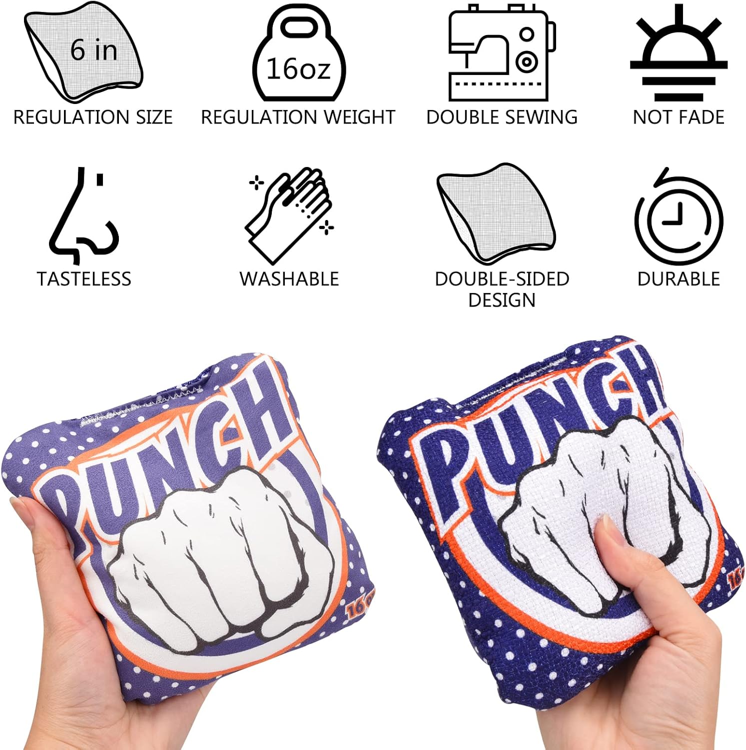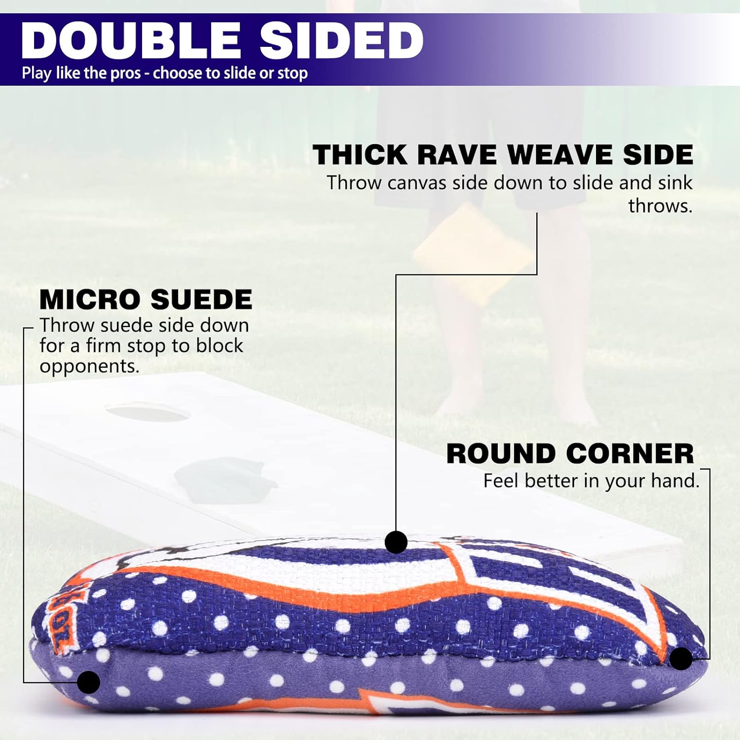 1.Cornhole game set no break-in needed with easy-to-grip, soft twill & suede fabrics, double-stitched and designed for gameplay and consistent throws right out of the box. 2.Corn hole beans bags double stitched interior seamed upholstery grade fabric, handmade details and the durability of manufactured, each bag measures 6" x 6". Additional zig zag stitching give the bag extended durability to withstand long periods of play. 3.Backyard games usa cornhole bags good quality plastic resin and filled with 1lb (16 oz) with quality resin pellets that won’t break down or mold from weather like corn-filled bags. Plus FREE canvas carrying bag! 4.Cornhole bags acl approved, take your game to the next level by using professional cornhole bags set with the highest quality materials weight to provide a consistent feel & perfect throw EVERY. 5.Corn holes outdoor game the dual-textured surface helps them hit the target more often than any other bags we tested. Cornhole games for adults and family - Ideal for tournament play in multiple settings from outside, beach, backyards and gyms. -If you’re not thrilled with our product, simply let us know with a simple email for a prompt service .