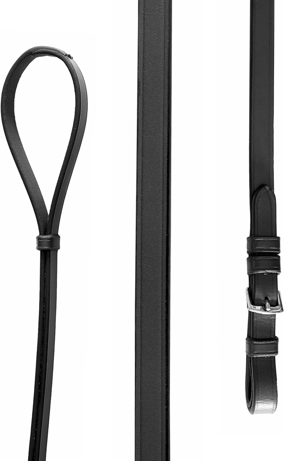 Elevate your control and precision with Exion Leather Curb Reins—a reliable choice for riders using a double bridle or Pelham bit.🔹 MATERIAL & CONSTRUCTION Made from premium vegetable‑tanned leather, drum‑dyed for rich color and suppleness. Lightweight and pliable, these draw reins horse English curb reins are stitched with heavy-duty cotton thread for lasting performance.🔹 DESIGN & FIT A slim 13 mm width distinguishes the curb rein from snaffle reins, offering a refined feel in your hand. Stainless steel buckles deliver simple, secure attachment without bulk.🔹 CONTROL & COMFORT Smooth, buckle-end curb reins give subtle feedback to advanced riders. Ideal as horse draw reins leather tools for precise riding and compliance in dressage or hunter/jumper disciplines.🔹 SIZE & COLOR OPTIONS Choose from Pony, Cob, Horse (Full), or Warmblood (Over) to match your bridle size. Available in classic Black or Havana Brown to coordinate with English tack.🔹 PROFESSIONAL-GRADE QUALITY Designed based on feedback from equine trainers and riders, the Exion curb reins are durable, comfortable, and trusted in both training arenas and competition rings. Each pair reflects handcrafted excellence, tested and recommended by disciplined riders.