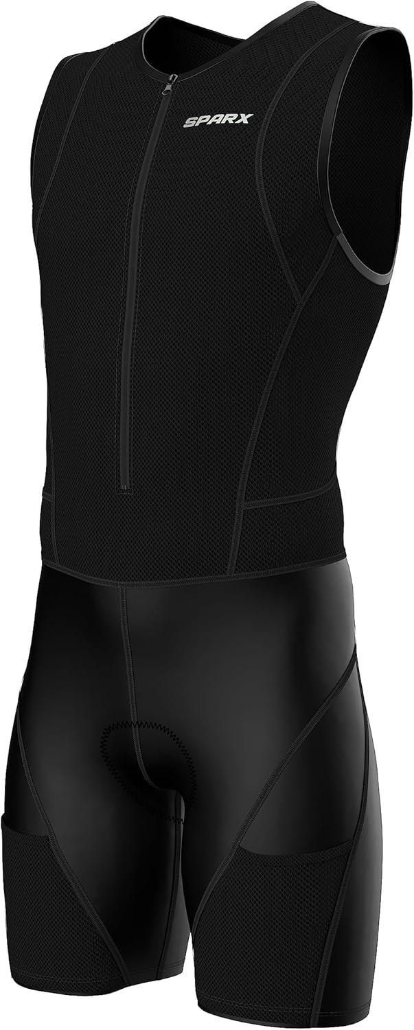 High-quality, environment friendly Italian fabric and technical features blend together in this Sparx Men Competitor Triathlon Suit. Featuring a high-tech chamois & reflective elements these tri suits provide comfort throughout your race so you can stay focused on speed and performance with zero distractions.