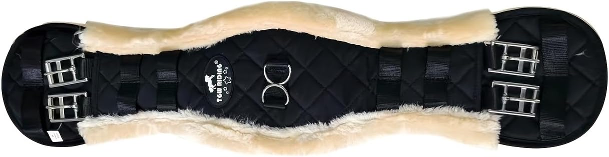 Experience superior comfort and protection with this premium dressage girth featuring luxurious sheepskin lining and durable quilted construction. Available in lengths from 19.69 to 33.46 inches, this versatile girth comes with strong stainless steel buckles for secure attachment. The plush natural sheepskin edges provide excellent cushioning to prevent rubbing and chafing during rides, while the quilted black material offers stability and even pressure distribution. The center D-ring allows for training aid attachment, and the elastic ends ensure a snug yet flexible fit. Perfect for both everyday training and competition use, this girth combines functionality with horse comfort. The classic black design with quality hardware makes it suitable for all types of dressage saddles. Remember to measure your horse carefully using the provided size chart to ensure the perfect fit.