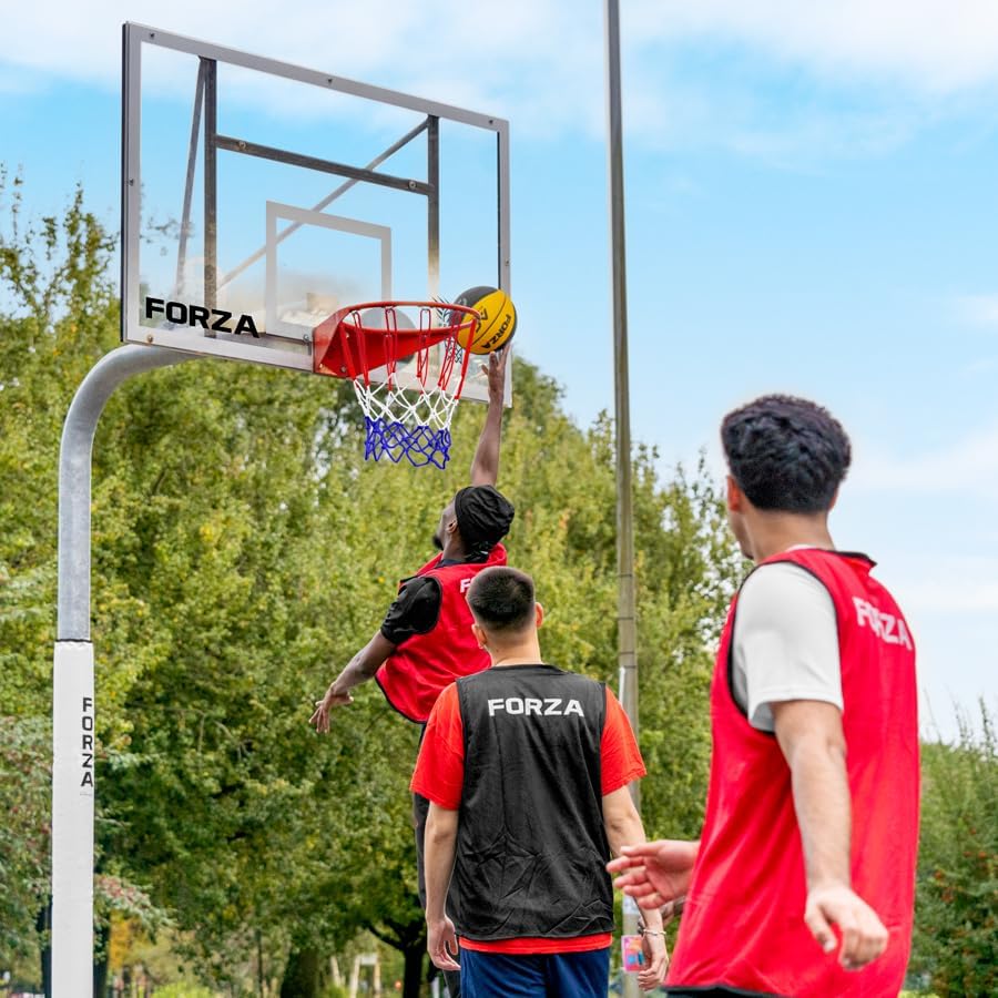 FORZA Basketball Ring SpecificationsDimensions:Basketball Hoop Diameter: 18in | 45cmEuropean Hole Spacing: 4.5in x 3.5in | 11cm x 9cmStandard US Hole Spacing: 5in x 4in - 5in x 5in | 13cm x 10cm – 13cm x 13cmNetting: 5mm | 0.2inMaterials:Orange powder-coated steelSteel mounted plate12-loop twine nettingMiscellaneous:Basketball hoop must be bolted to backboardsEndorsed by FIBANBA ConformedNet Colors: White or Colored (Red, White & Blue)PLEASE NOTE: Bolts are NOT included