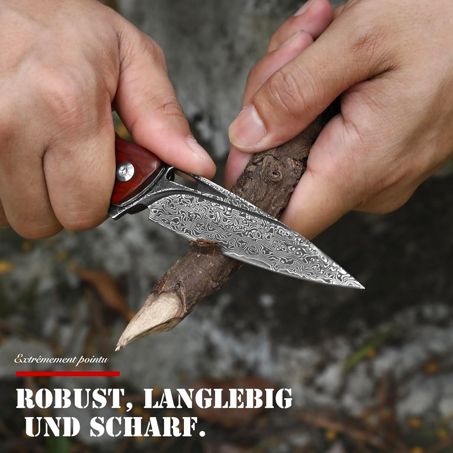 DRACHENADER Pocket Knife Damascus Made of Damascus Steel with Clip Vg10 Core Wooden Handle Gift for Knife