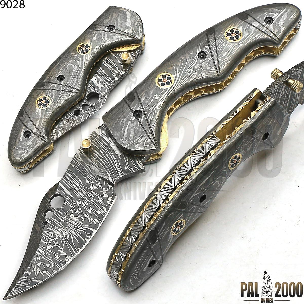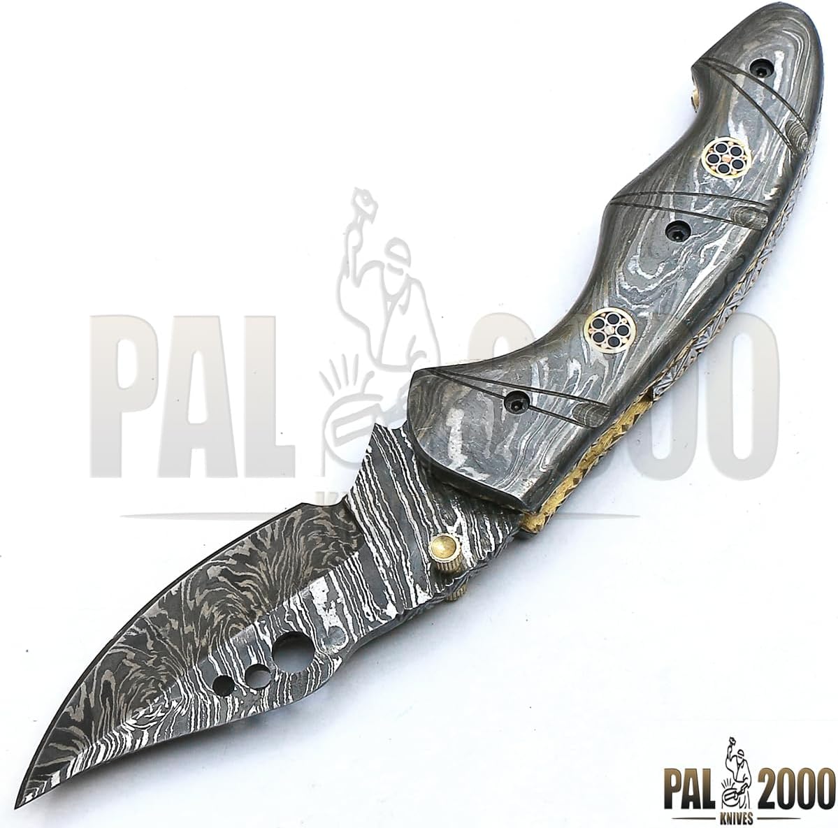 Handmade Damascus Steel Blade Hunting Bowie Knife. Overall Length: 7.4 Inches Approx Blade Length: 3.4 Inches Approx Handel Length: 4 Inches Approx Handle: Damascus Handle With Amazing Art on the Handle. Handmade Durable Leather Sheaths Included. DAMASCUS STEELMAKING: Our Damascus article is a Double-edged blade so that it fits both left-handed and right-handed persons. The blade is folded 5 times starting from 11 layers Of 1095 and 15N20 giving approximately 352 Layers in this awesome Pattern. WILL NOT RUST WITH PROPER CARE: Your article will last you for years with the proper care. Keep it dry, oil the article blade when not using for a long time. vegetable oil or any lubricant Oil after washing. Do not put the Knife into the Sheath to store for a Long time without oil. BEST FOR CUTTING - SLICING - MINCING & DICING: our articles can easily handle your daily kitchen tasks - designed for cutting, slicing - mincing, and dicing of fruit - vegetables, and meat. The classic look, ergonomic handle, and ease-of-use design that you will come to rely upon it. We Are Making All Types of knives. BUYING: You must be sure 18+ of age and you can legally purchase and own an Article and will use it responsibly. Our articles have been built with Perfection in Mind. Ideal Multipurpose Cutlery Gift Christmas, Weddings, Birthdays, for Home Cooks, Professional Chef’s, Culinary Students, and more. You can't lose. Limited Supply, Order Now before they are Sold Out. Great piece of art for a perfect gift knife as well as fully functional.