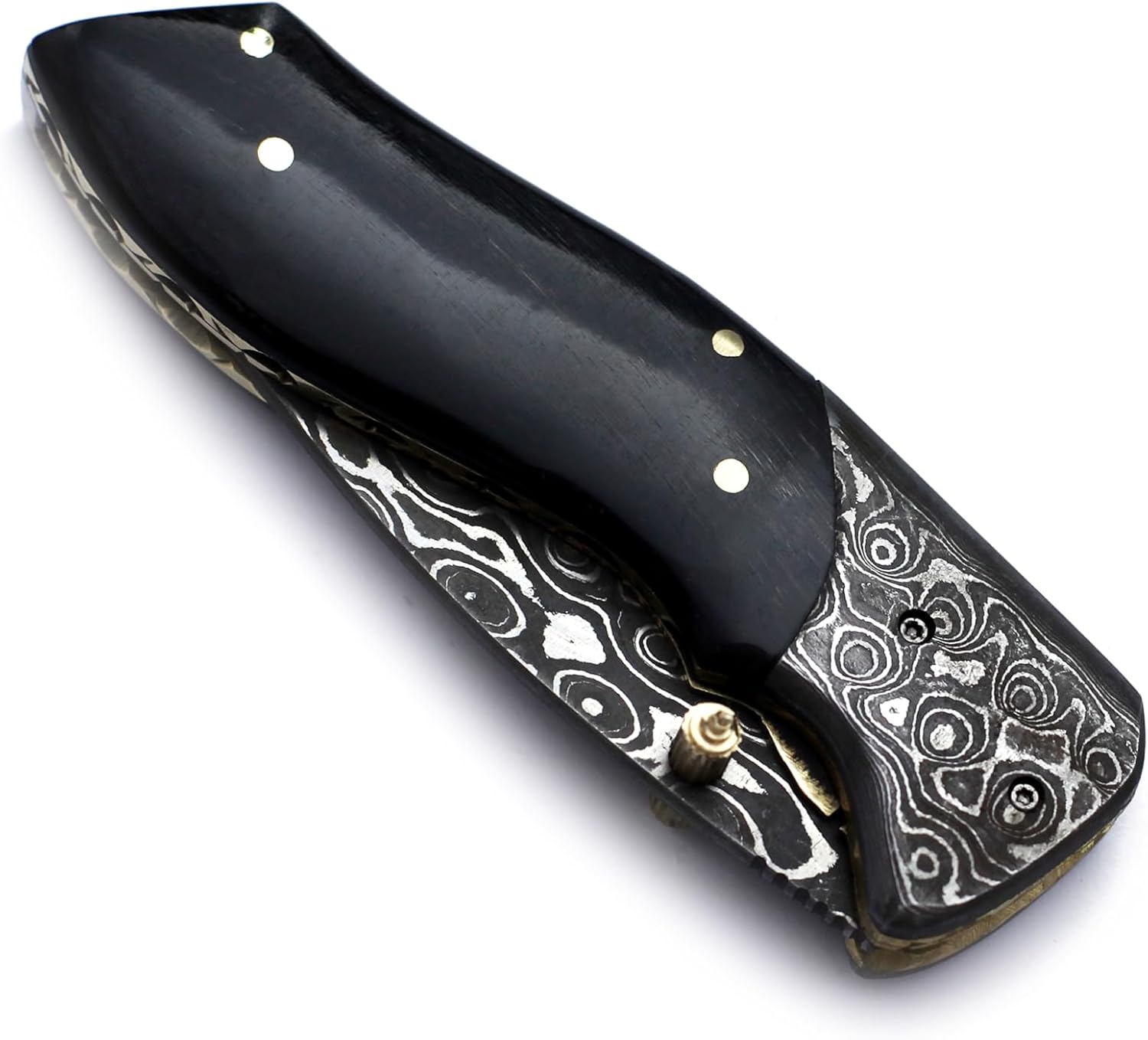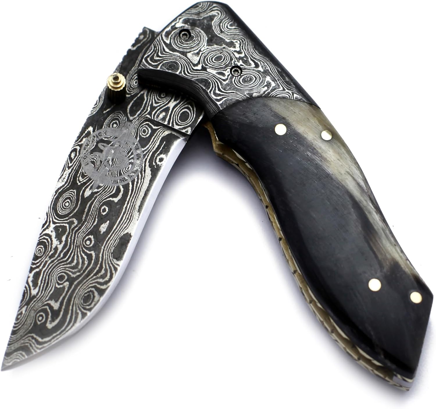 Product Quality : WOLFWFD-2538 is 100% hand-forged using 15N20 and 1095 high and low carbon steel folded with extensive hours for forging layers to make solid Damascus hunting knife . The blade is so sharp that this will quickly and efficiently remove the hide from any animal. Product Specifications : Model No: WOLF WFD-2538Overall Length: 7.50 inchBlade length: 3.25 inchHandle Length: 4.25 inchSheath Material: leather sheathBlade Type: Damascus About WOLFKlinge Custom Knives Reputation, flair, and the overall impact of knives stretches way beyond when it comes to the quality of WOLFKlinge KNIVES. Many don’t know where to begin and buy the best Damascus steel knife, that's where WOLFKlinge comes in. The WOLFKlinge knives are made from top quality Damascus steel, which are tempered to give it the hardness, and flexibility it needs to perform as a solid hunting knife. Having a WOLFKlinge survival knife means you will have a higher rate of survival when you are anywhere outdoors. This is because of its superior toughness, sharp cutting edge and the surface characteristic of damask like swirled pattern. Our knives are rooted in traditional high-performance materials, and attention to detail that will stand up to the demands of any environment. We are proud to work with some of the most influential hunters and hardest workers. Our resulting knife comprises up to many layers, and is certain to have a solid density and varied design. We ensure both the integrity and uniqueness of our Damascus steel every time. When it can be used? Built for control and precision. This multi-purpose survival knife works great for any tasks. Suitable for various hunting, survival, tactical, and outdoor situations.
