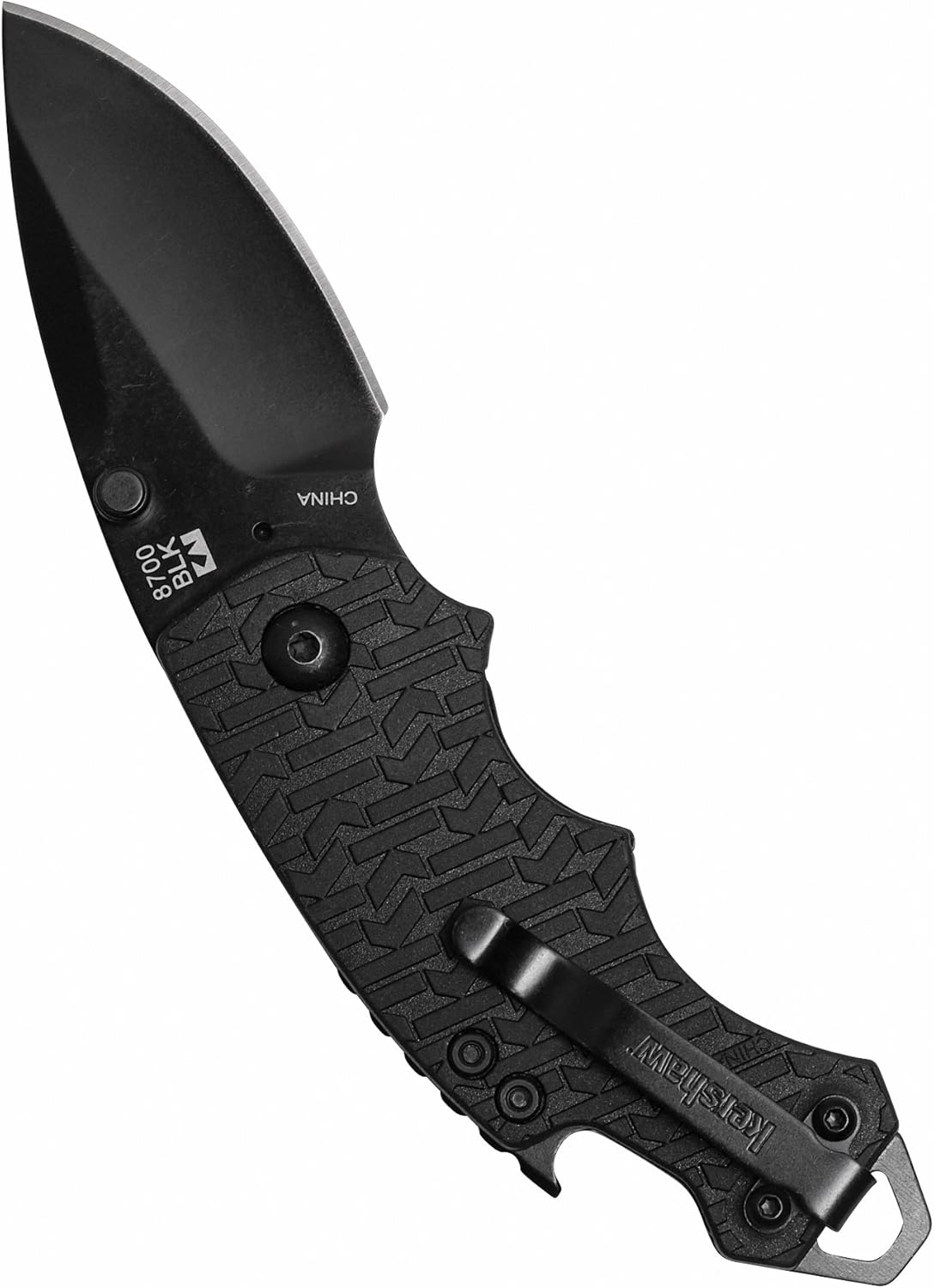 This useful pocket knife bundle includes two versatile Kershaw knives perfect for everyday carry. The first is the popular Clash model with a 3-inch partially serrated drop point blade made from durable 8Cr13MoV steel. Its black oxide coating enhances performance while the textured glass-filled nylon handle provides a secure grip. Assisted opening allows fast one-handed access to the blade, which is securely locked open via a sturdy liner lock. Weighing just 4.3 ounces, the Clash is slim yet sturdy enough for daily utility tasks. Complementing it is the compact 2.4-inch Shuffle model, also with a drop point blade made from 8Cr13MoV steel but finished in a non-reflective black oxide coat. Its slim all-black design features an easy-grip K-Texture glass-filled nylon handle with integrated bottle opener and screwdriver. Tipping the scales at a mere 2.8 ounces, the Shuffle's manual opening blade locks securely via a sturdy liner lock. Together these two lightweight Kershaw knives offer versatile partially serrated and plain edge blades perfect for everyday carry, camping, hiking, hunting, and work. Their durable construction and useful features like one-handed opening, integrated tools, and deep carry clips make them an essential bundle for utility and outdoor tasks.