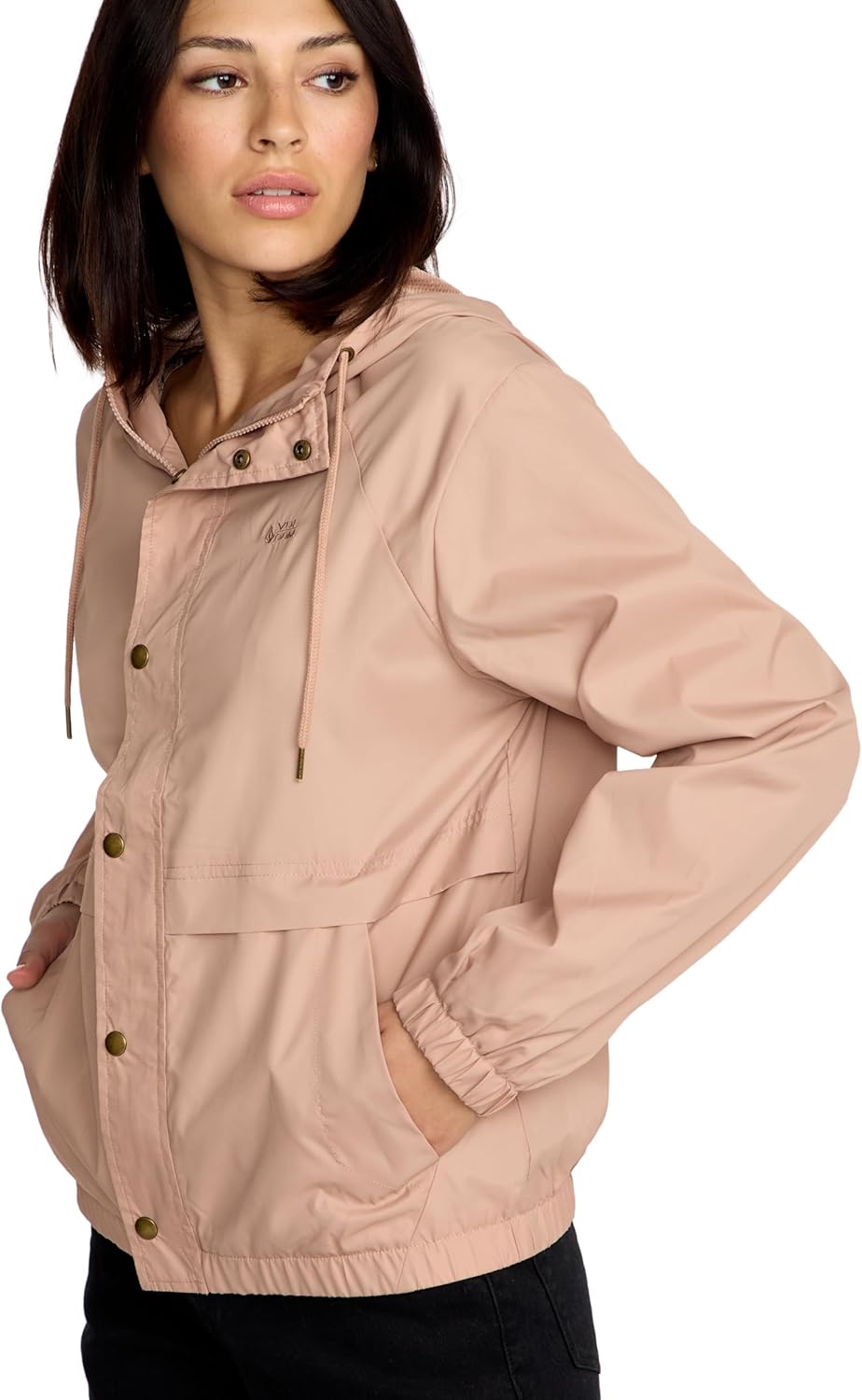 The Volcom Women’s Stonewind Windbreaker Jacket delivers lightweight wind protection with iconic Volcom design. Made for transitional days or breezy outings, this zip-up jacket features a breathable mesh lining, elastic waistband, and a fixed hood for coverage when you need it. Functional yet stylish, it’s detailed with Stone-inspired seaming on the lower pockets and Volcom embroidery at the chest. With a 25" center back length, it pairs perfectly with leggings, denim, or joggers—making it your go-to grab-and-go layer for active days or laid-back weekends.