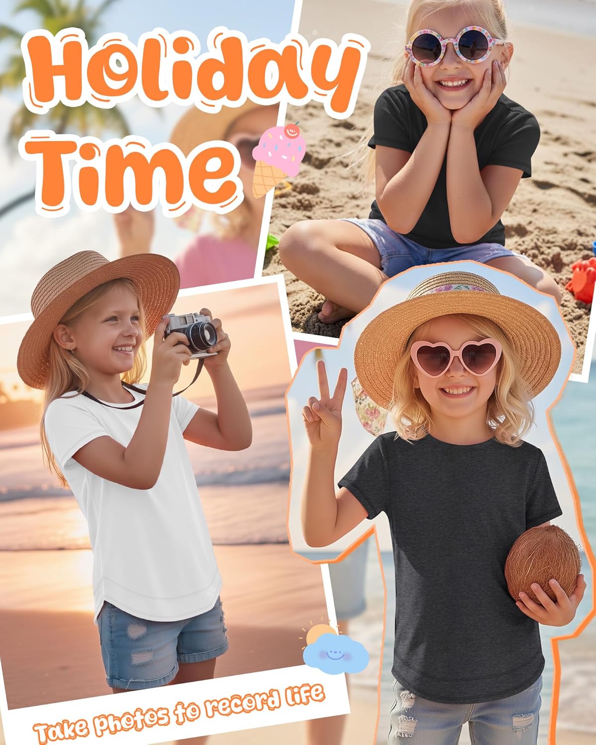 Features: Multiple colors available: Our girls' loose fit t shirts have a relaxed, flowy silhouette that suits all body types. The loose design allows air circulation, keeping kids cool in summer, and leaves space for running, jumping, or climbing without tightness. Practical design: Our kids knit crewneck tops feature meticulous craftsmanship: the contrast stitching is evenly applied, and the curve hem is neatly finished to avoid fraying. Specifications: Material: 60% Polyester, 35% Rayon, 5% Spandex Package includes: 4 x Girls' short sleeve shirts Notes: Manual measurement, please allow slight errors on size. The color may exist a slight difference due to different screen displays. Hand/machine wash in gentle with cold water, hang to dry or line dry