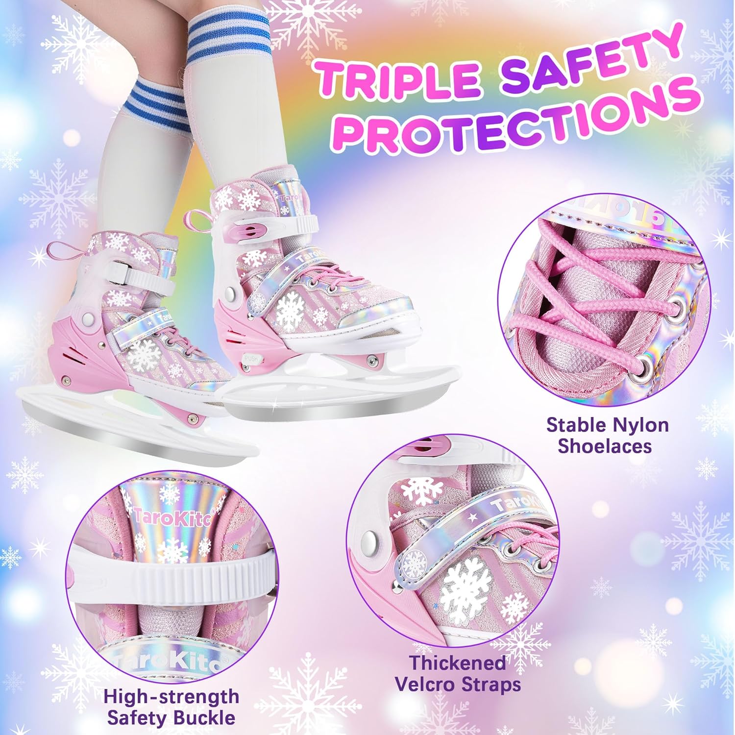 Ready for the comfortable ice skating experience? Our adjustable skates are the ideal accessory for your winter sports and leisure activities - they combine style, optimal comfort and high performance and make them an indispensable part of your winter equipment. Thanks to the size adjustment function, they adapt perfectly to your feet, ensure maximum comfort and secure stability when gliding. Also equipped with a high-quality, robust blade that ensures excellent gliding. Available colours: blue, purple, white. Package includes: 1 pair of adjustable ice skates.