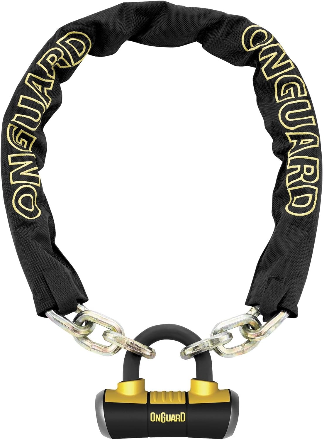 The OnGuard Mastiff 3.5 ft Chain Lock delivers serious protection for bikes, scooters, and e-bikes in medium-to-high risk environments. The 110 cm (3.57 ft) chain is built with titanium-reinforced hardened steel hex links designed to resist cutting, prying, and leverage attacks. The chain integrates directly into a heavy-duty X2P Double Bolt Lock Head, securing both sides of the locking mechanism for exceptional pull resistance. A dual rubber housing helps protect frames and finishes from scratches while also improving durability and weather resistance. The advanced Z-Cylinder core adds protection against bumping, drilling, and picking attempts for dependable long-term security. Designed for riders who want strong yet manageable protection, this chain lock offers an ideal balance of durability, portability, and everyday convenience. Includes five precision laser-cut keys.