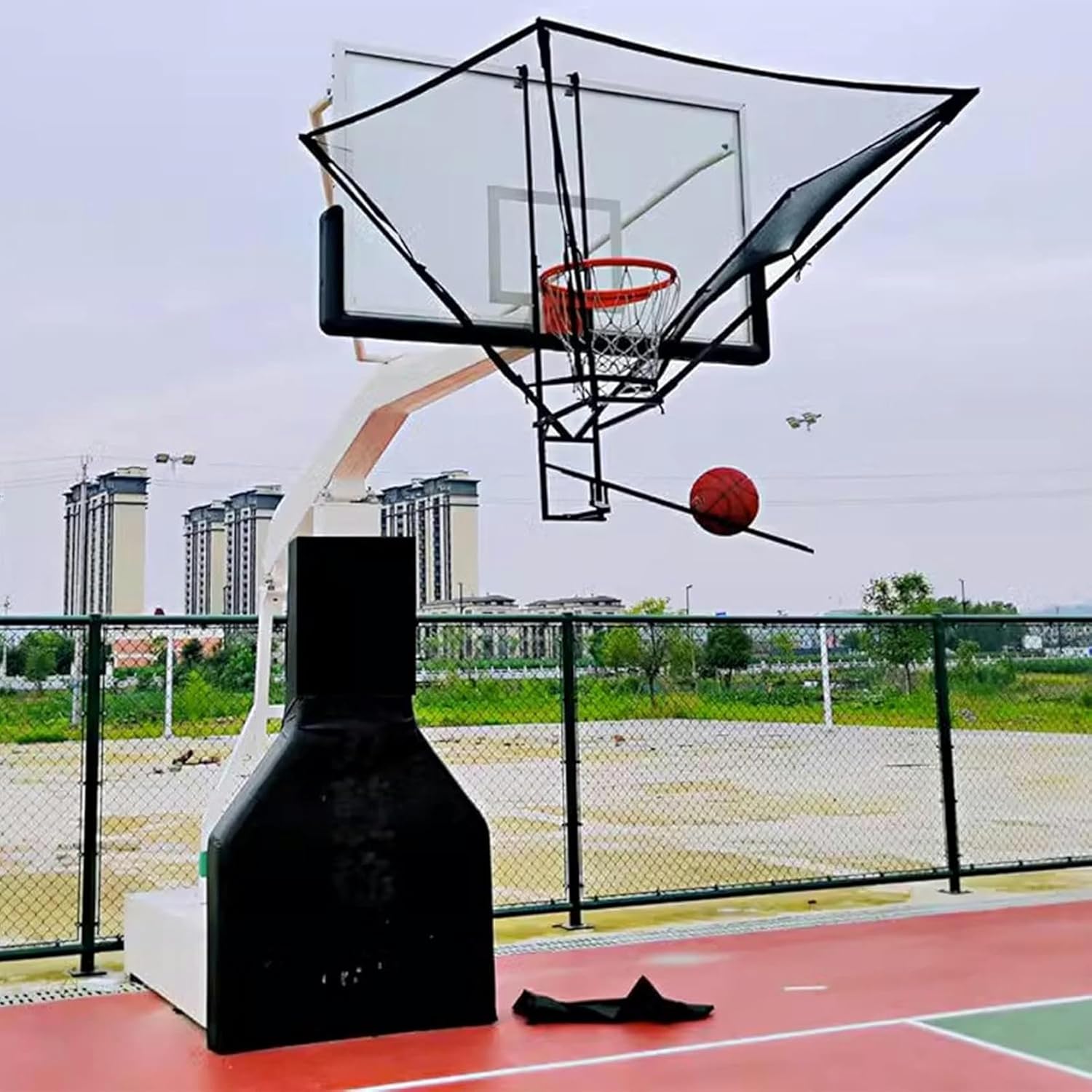 Basketball Rebounder Description:You are not satisfied with your shooting accuracyYou must run behind the ball every time you practice------Our - basketball rebounding network can help you solve these problems!characteristic:Basketball Return to the Net is the best choice for basketball shooting and training facilities.Easy to install network compatible with most basketball hoops.Save time by picking up balls and continuing shooting.Adjust shooting movs to achieve a better state.Easy to store and transport you can take it anywhere you want.Black checkerboard patterns can reduce light refraction and glare improving visibility during gameplay.Suitable for personal training and camp training suitable for basketball enthusiasts shooting perfect matches.It can be given to family friends or other basketball enthusiasts.Specifications:Material: Metal iron frameColor: BlackWeight: 9 kilograms/19.8 poundsFolding size: 118x36x17cm/46.4x14.2x6.7inThis package includes:1 x Basketball Return Network(excluding basketball baskets).Suggestion:Manual measur may result in an error of 3-5 centimeters between product dimensions and physical dimensions.The product is photographed in person but due to differences in lighting equipment shooting angle and computer resolution the received item and photo may differ. The actual item shall prevail.