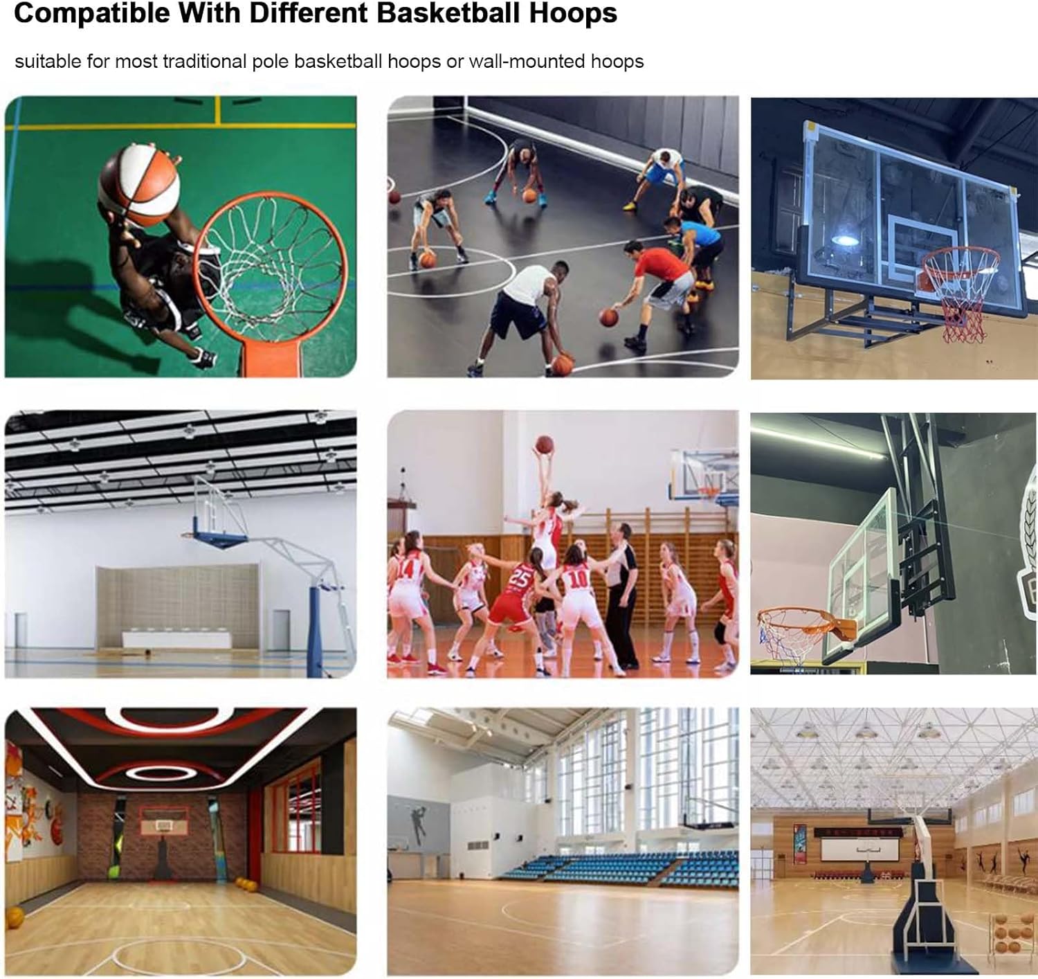 Basketball Rebounder Description:Built to withstand intense training sessions this basketball rebounder is designed with durability in mind. Count on its sturdy construction to withstand the toughest shots and rebounds providing reliable support throughout your training sessions.This top-notch training equipment is a game-changer for players of all levels revolutionizing the way you train and enhancing your skills. Get ready to take your game to new heights with the ultimate addition to your basketball gear.Specification:Material:Polyester Net,SteelProduct Compatible: Indoor/Outdoor basketball hoopPackage Size: 105x38x15cm/41.3x14.9x5.9 inchesProduct Weight: 9KG/19.8lbsInstallation Methods: HangingCharacteristics:Attaches easily to any netted basketball rim.Suitable for teenagers mobile shooting practice.Durable to withstand many seasons of use.As a holiday gift for anyone who loves basketball.The black backboard net can reduce the refraction and glare of light and increase the visibility during the game.Package Include:1 × Basketball Shot ReturnerSince the size above is measured by hand the size of the actual item you received could be slightly different from the size above.Please be reminded that due to the light and screen difference the item's color may be slightly different from the pictures.