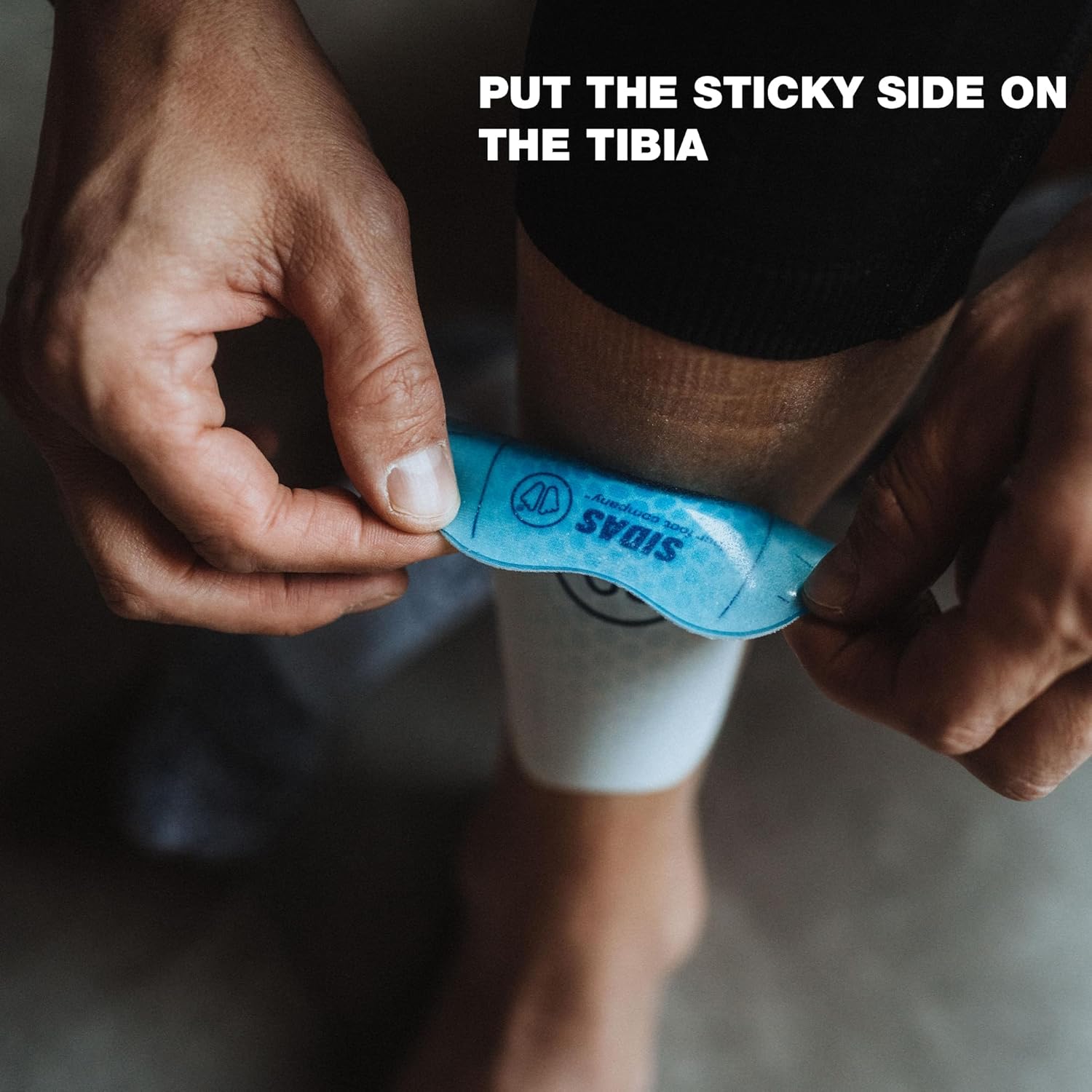 Prevents and relieves pain related to pressure and friction in the support areas of the shin. Specifically adapted to the shape of the shin. Can be cut to size. No glue. Apply directly to the skin. One size fits all washable and reusable.
