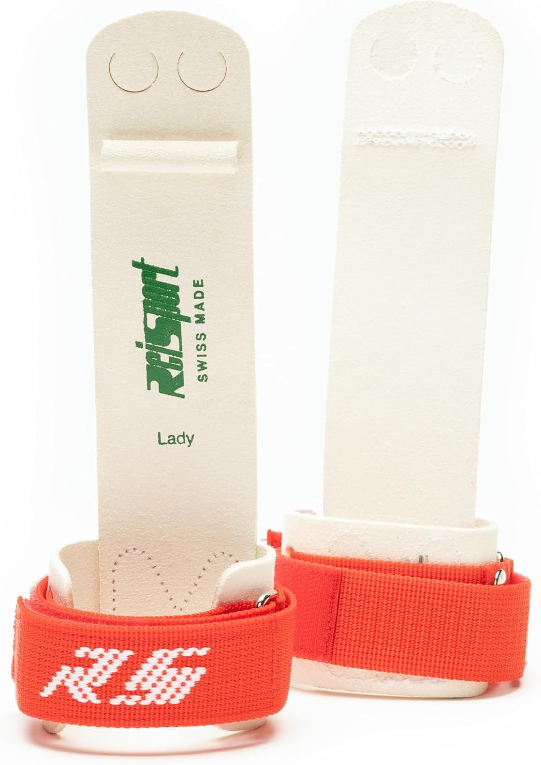 This gymnastics bundle pairs Reisport's premium leather uneven bar grips with their complementary white wristbands to provide comprehensive protection and enhanced performance. The uneven bar grips showcase Swiss design with their straight silhouette and slim dowel construction, empowering advanced gymnasts with strength and stability. Crafted from durable, resilient leather, they offer a luxurious feel and reliable grip to reduce slippage during routines. Their innovative hook and loop closure allows for a customizable, secure fit. The machine-washable white wristbands perfectly complement by protecting the wrist from abrasion under the grips. Made in Switzerland from tightly woven cotton, they provide comfort without risk of snagging. Together, these thoughtfully designed components offer complete hand and wrist protection so gymnasts can focus on mastering skills without pain from rips, blisters, or calluses during intensive training. With sizing precision provided in the grip chart and adjustable features, gymnasts can find their ideal fit for optimal control and maneuverability on the bars.