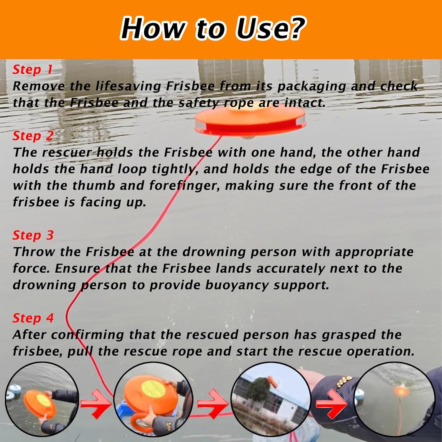 When every second counts in a water emergency, our professional-grade Water Rescue Frisbee is designed to provide a fast and effective solution. Unlike traditional rescue tools that can be slow and cumbersome, this innovative Frisbee is engineered to streamline rescue operations, enhancing safety and efficiency in critical moments. Ideal for lifeguards, outdoor enthusiasts, and water rescue professionals, it’s a must-have for any aquatic environment.**Specifications:**- **Shell Material:** Durable PC + ABS Engineering Plastic- **Color:** Bright Orange for high visibility- **Frisbee Diameter:** 13.8 in- **Rope Material:** High Strength Polypropylene- **Rope Length:** 131 ft- **Rope Diameter:** 0.15 in- **Vacuum Buoyancy:** 35 N- **Rope Pull Strength:** 331 lbs- **Maximum Flight Distance:** 164 ft**Key Features:**1. **Durable Construction:** Made from robust ABS engineering plastic, this Frisbee is built to withstand impact and provide long-lasting performance.2. **Extended Reach:** The included long rope ensures stability and support in fast-moving water or vast open seas, crucial for effective rescues.3. **High Visibility:** Its vibrant orange color stands out in any weather condition, making it easy to spot, which can be vital for rescuers and those in distress.4. **Ergonomic Design:** Symmetrical edge grooves allow for a comfortable grip, making it user-friendly for both right and left-handed users.5. **Compact Storage:** The rope can be neatly stored within the Frisbee, ensuring easy transport and organization when not in use.6. **Versatile Application:** Perfect for swimming areas, boating, and water sports, it's an essential tool for lifeguards and water rescue teams.**Package Includes:**1 x Water Rescue Frisbee**Note:**- Please allow for slight measurement variations due to manual sizing.- Color may vary slightly due to diff...