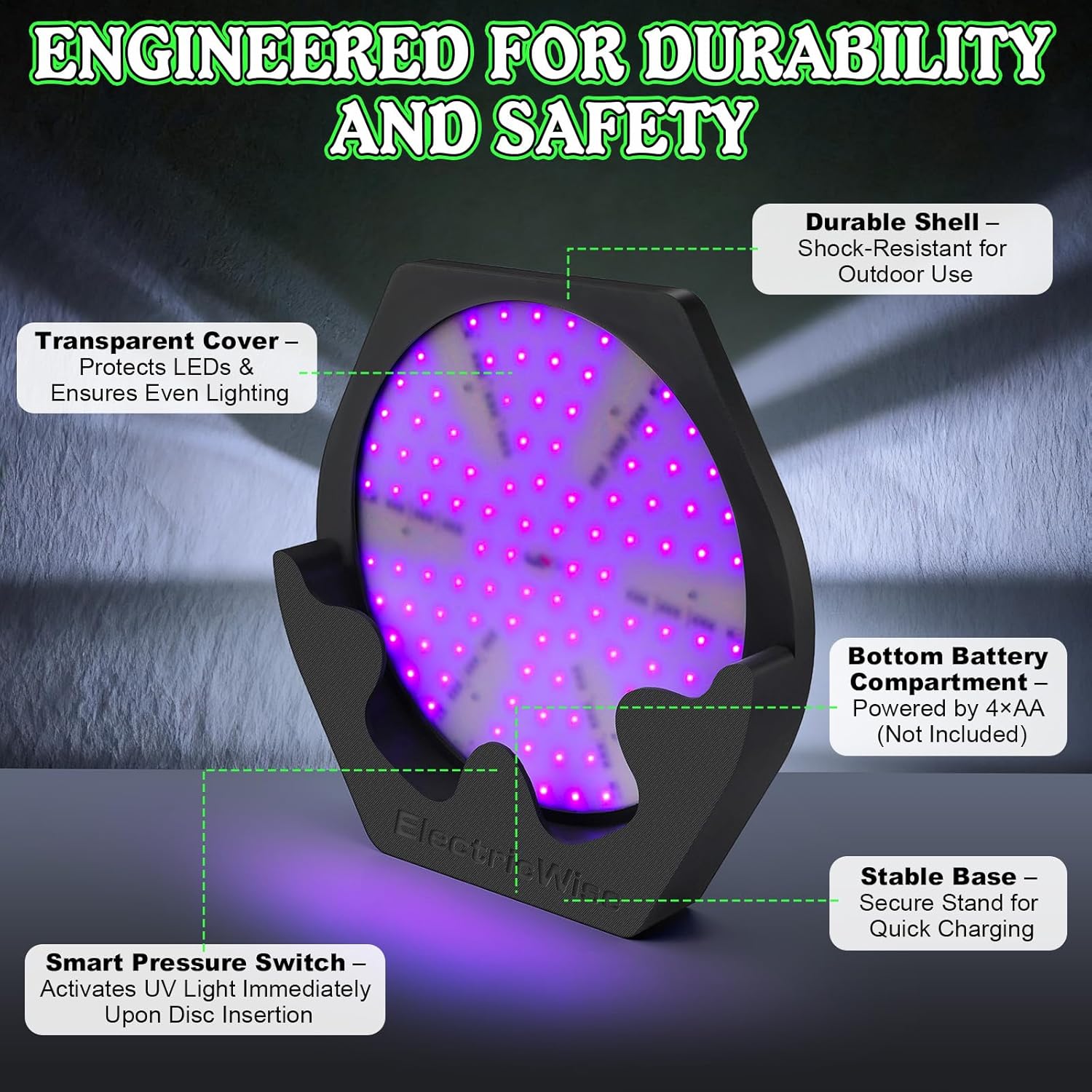 • Long Lasting & Reliable: Equipped with energy efficient LEDs and a stable circuit design, it charges discs within seconds while maintaining consistent brightness over time. No need for frequent battery changes or worrying about sudden failures — trusted by disc golf enthusiasts for dependable night play